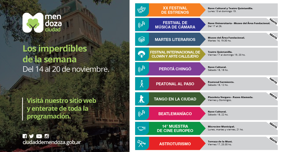 Del 17 al 26. Programación completa en ciudaddemendoza.gob.ar