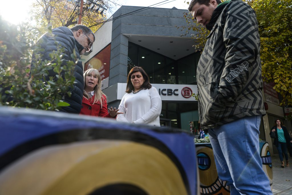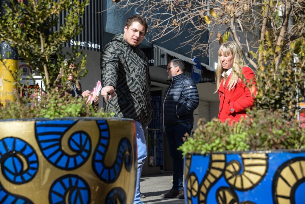El reconocido artista Sergio Roggerone y el joven pintor mendocino Tomás Mattano, recorrieron las macetas ubicadas en el “nuevo centro”.