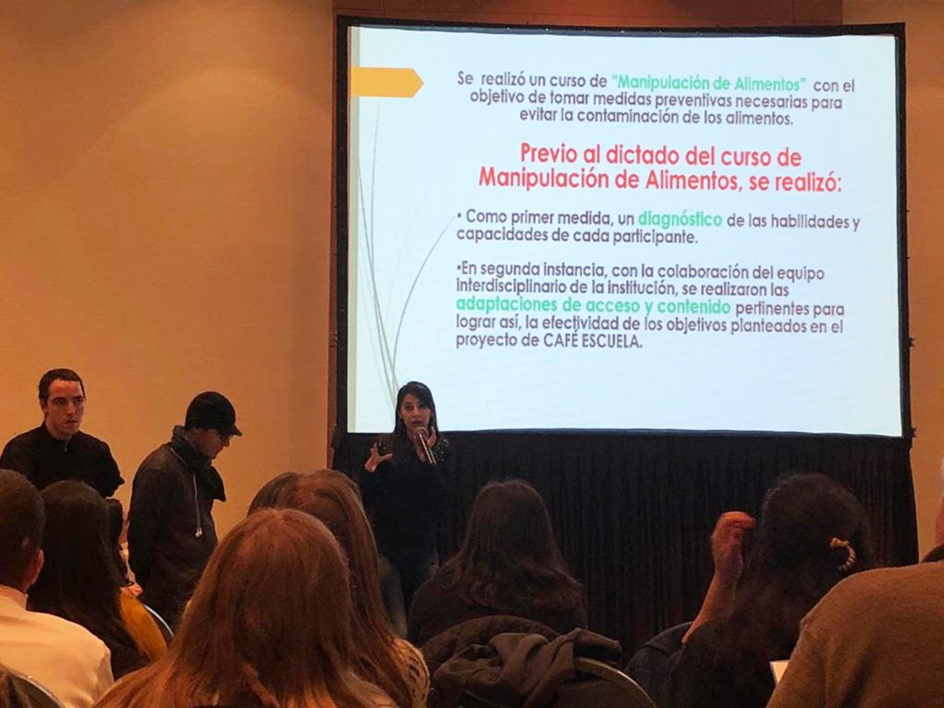 En ese contexto, Marcela Pellizer, bromatóloga de la Municipalidad de la Ciudad de Mendoza, Valeria Tarquini, psicopedagoga y coordinadora de los jardines maternales de la Ciudad, expusieron acerca de su experiencia del curso de manipulación de alimentos que lleva a cabo la Ciudad para quienes asisten al Centro Municipal de Atención para Personas con Discapacidad. En la presentación, disertaron las profesionales del equipo interdisciplinario, a cargo del proyecto, junto a Fernando y Juan Carlos, participantes que realizan el taller de cocina, el cual tiene el objetivo de brindarles herramientas que les permitan seguir perfeccionando y creciendo en su oficio.
