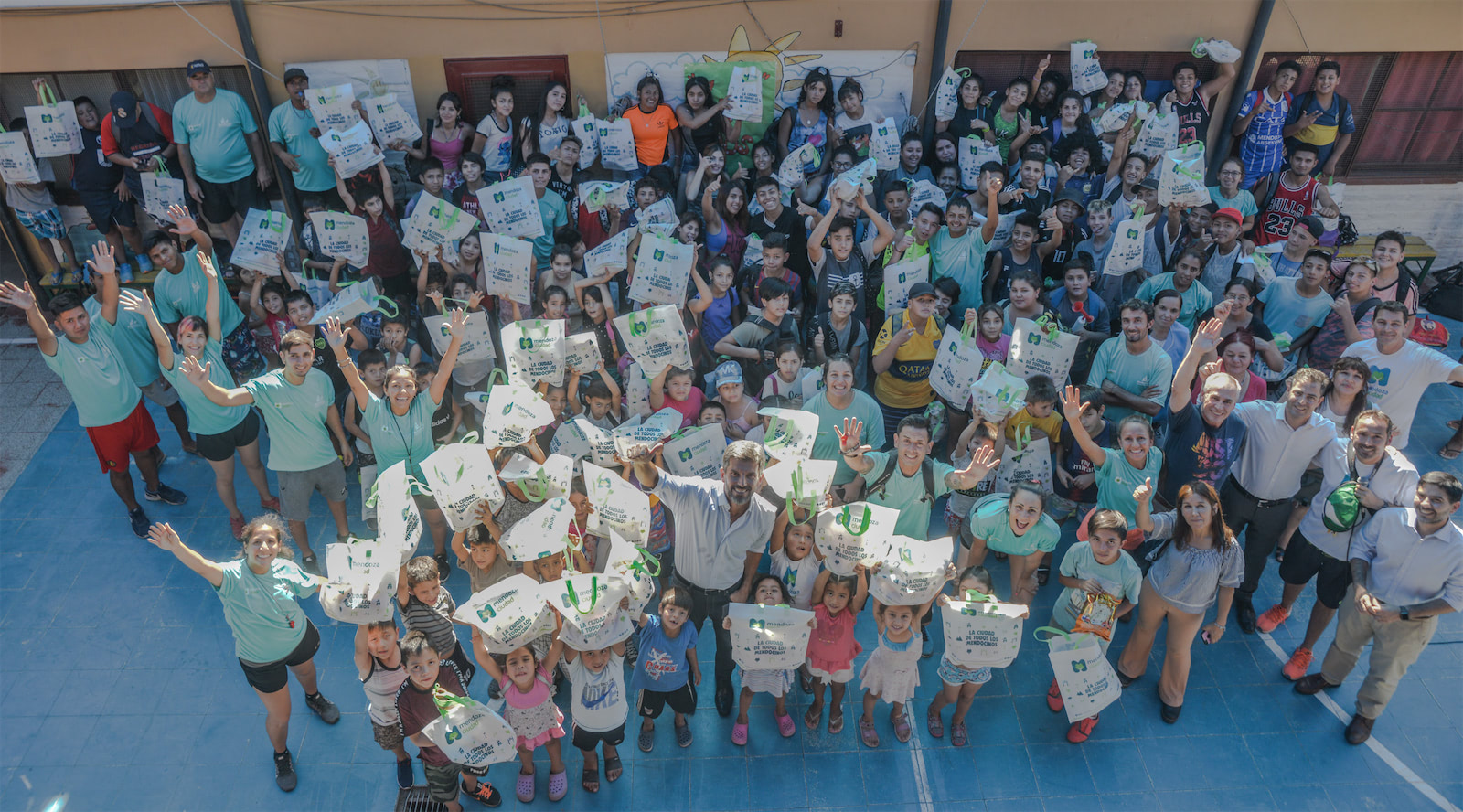 Este martes por la tarde, los niños y adolescentes que asisten a este espacio deportivo y recreativo, recibieron de manos del intendente de la Ciudad de Mendoza, un pan dulce para compartir con sus familias en las fiestas. La donación fue realizada por la empresa Hipercerámico, que entregó los panes al municipio para que luego este, los hiciera llegar a los barrios del oeste de la Ciudad.