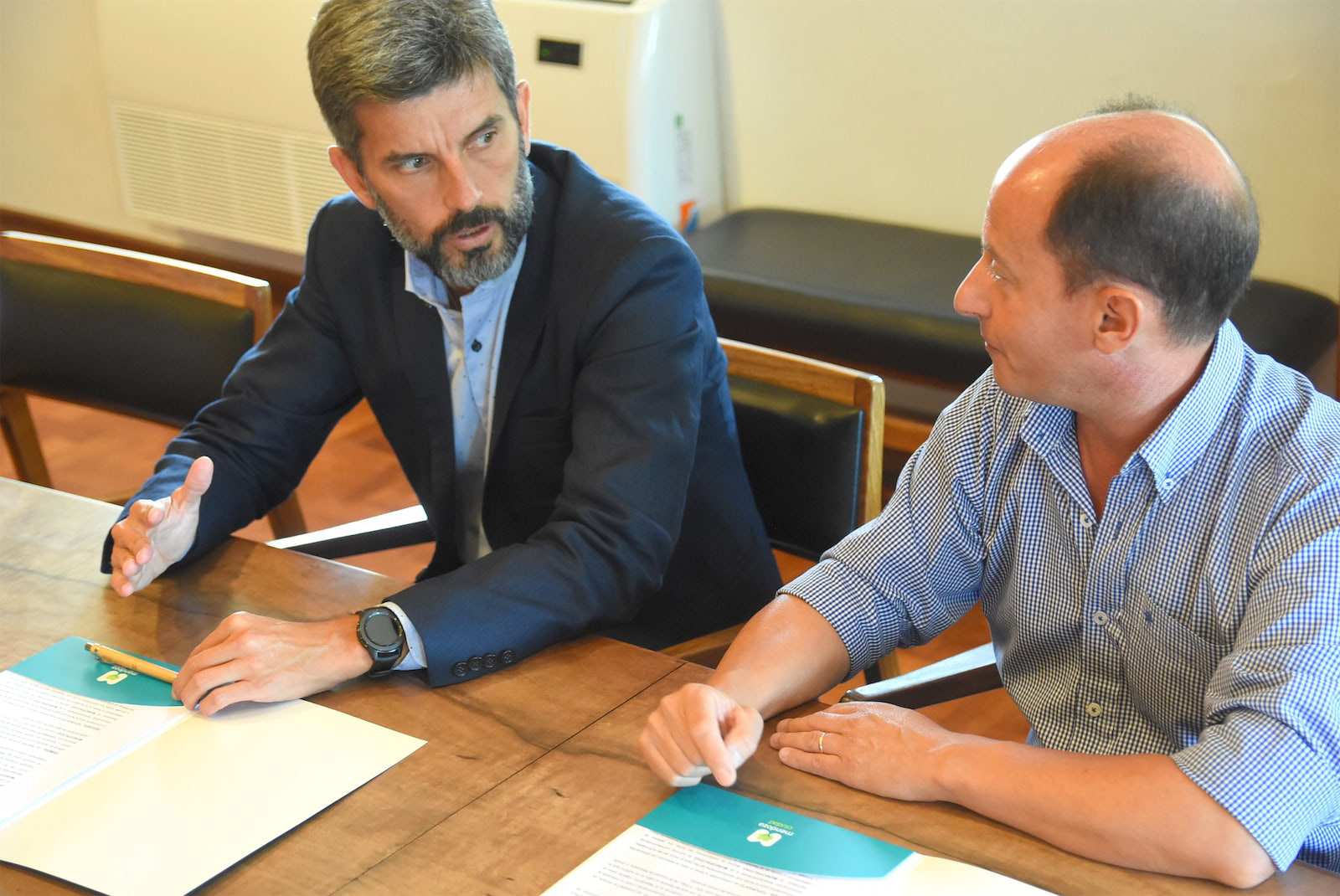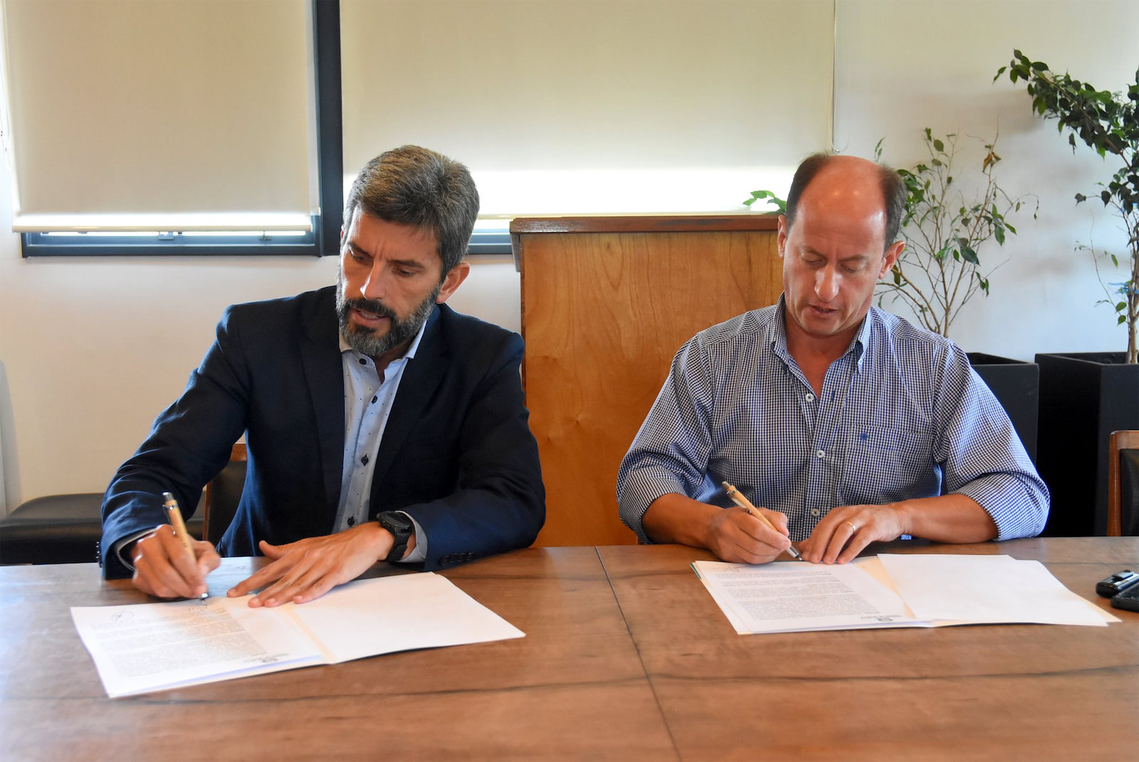 Los intendentes Ulpiano Suarez y Gustavo Soto rubricaron este acuerdo que prevé capacitaciones en el ámbito de la seguridad ciudadana y el tránsito vehicular.