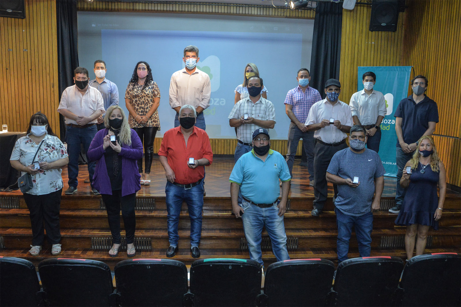 El intendente de la Ciudad de Mendoza, Ulpiano Suarez, reconoció y les entregó una medalla a los empleados que cumplieron 30 años de servicio en el municipio. El reconocimiento se desarrolló en un emotivo acto que se realizó en el Microcine Municipal, cumpliendo con todos los protocolos sanitarios. Junto con el jefe comunal, participaron del evento el jefe de Gabinete, Raúl Zavi, y los secretarios Erica Rojas (Gestión Pública), Juan Manuel Filice (Desarrollo Urbano), Rodrigo Olmedo (Gobierno), Felipe Rinaldo (Turismo y Cultura) y Patricia Sánchez (Hacienda).