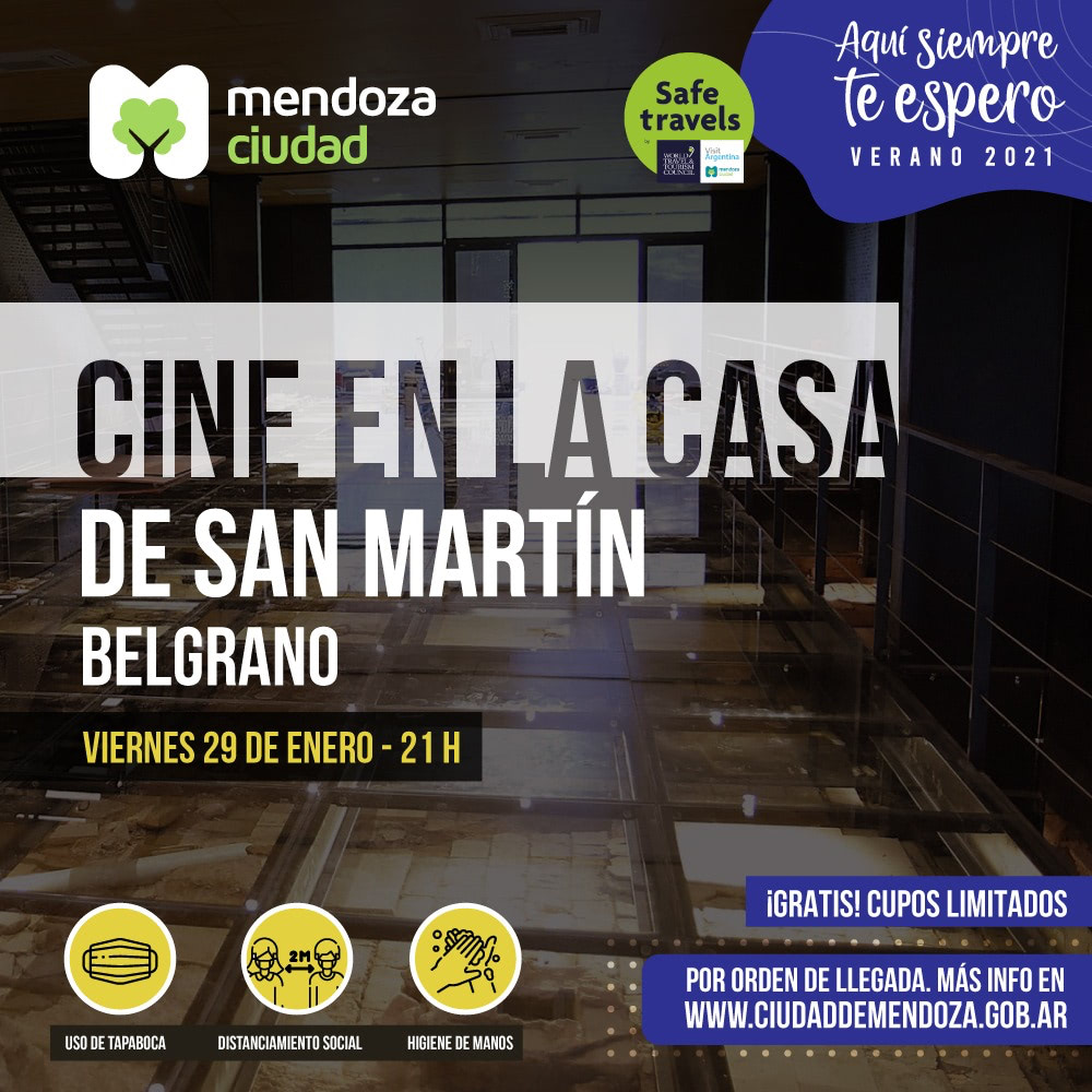 La Ciudad de Mendoza invita a la Casa de San Martín a disfrutar de algunas producciones históricas realizadas en el cine argentino. El CeFilMA (Centro de filmación Mendoza Audiovisual) estuvo a cargo de la programación de este ciclo que reúne largometrajes basados en la figura de nuestro Libertador, así como cuatro cortos locales con la misma temática.