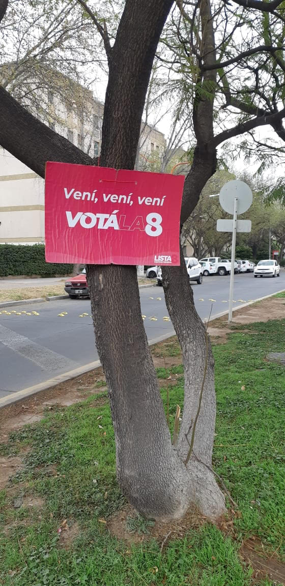 En un relevamiento parcial por las calles de la Ciudad, inspectores de Arbolado Público del municipio detectaron contravenciones al Código de Convivencia, al encontrar cartelería de propaganda política fijada a dos árboles. Los forestales se ubican en calle Las Cubas y Boulevard Mitre (Parque Central) y en calle Mitre 2585.