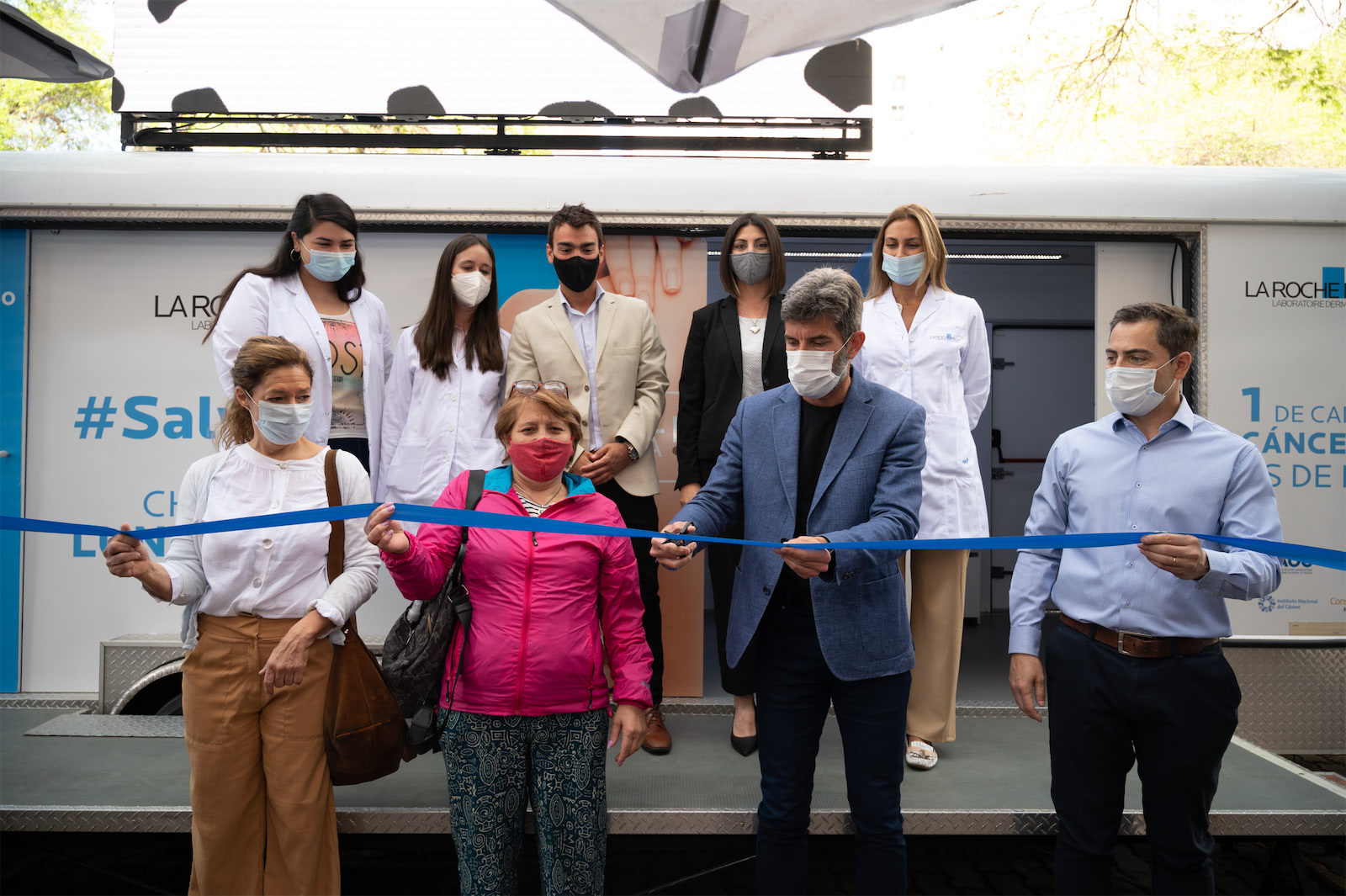 Con el objetivo de despertar conciencia sobre el cáncer de piel e invitar a vecinos, vecinas, mendocinos en general y turistas a cuidar del órgano más grande del cuerpo, el mandatario se realizó el control e inauguró junto a la Directora de Salud, Alejandra Weintraub, y al Secretario de Gobierno, Rodrigo Olmedo, tres consultorios móviles que brindan atención gratuita.