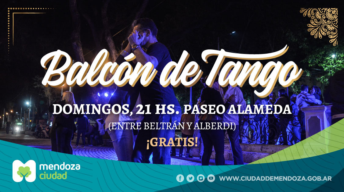 La Ciudad de Mendoza te invita a disfrutar del ciclo “Balcón de Tango” todos los domingos de noviembre, con excepción del día 14 por las elecciones parlamentarias. Los encuentros se llevarán a cabo en el Paseo Alameda de 21.00 a 23.00 hs.