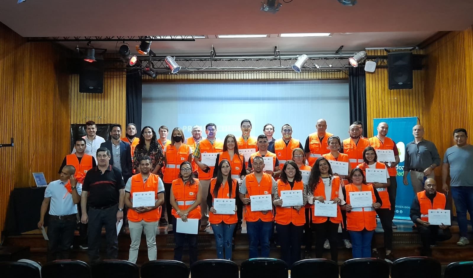 Participaron del evento, que se realizó en el Microcine Municipal, la secretaria de Gestión Pública, Erica Rojas; el secretario de Desarrollo Urbano, Juan Manuel Filice; el director de Recursos Humanos; Alfredo Guzzo; junto a autoridades de Defensa Civil y Bomberos Voluntarios de la Ciudad de Mendoza.