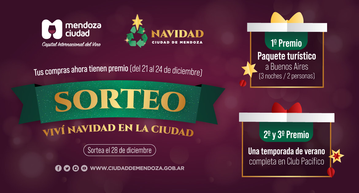 El sorteo se realizará el 28 de diciembre y ese mismo día se conocerán a los ganadores a través del sitio web y las redes sociales de la Ciudad de Mendoza.