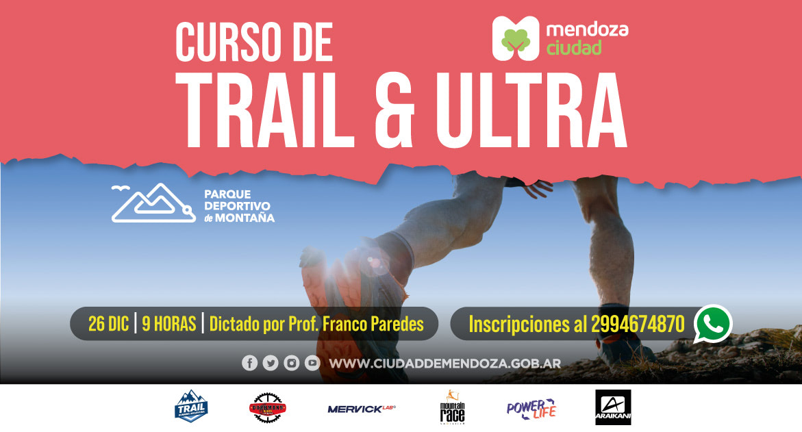 La Municipalidad de Mendoza convoca al curso intensivo de Trail y Ultra Trail que se dictará en el Parque Deportivo de Montaña de Ciudad el domingo 26 de diciembre, de 9 a 13.30. Podrás inscribirte hasta el 25 de diciembre.