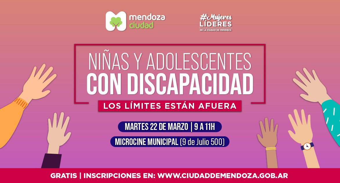 La Municipalidad de la Ciudad de Mendoza invita a vecinas y vecinos a reflexionar y comprender la realidad de niñas y adolescentes con discapacidad en el encuentro “Los límites están afuera”. El mismo será abordado por profesionales en distintas discapacidades el próximo 22 de marzo a las 9, en el microcine municipal David Eisenchlas (ubicado en el edificio de la Municipalidad de Ciudad, en calle 9 de Julio 500, subsuelo).
