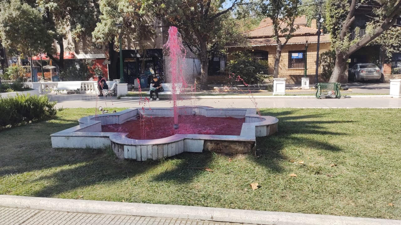 La Ciudad de Mendoza, como Capital Internacional del Vino y anfitriona de la Fiesta Nacional de la Vendimia, viste el agua de sus fuentes con un simbólico color malbec.