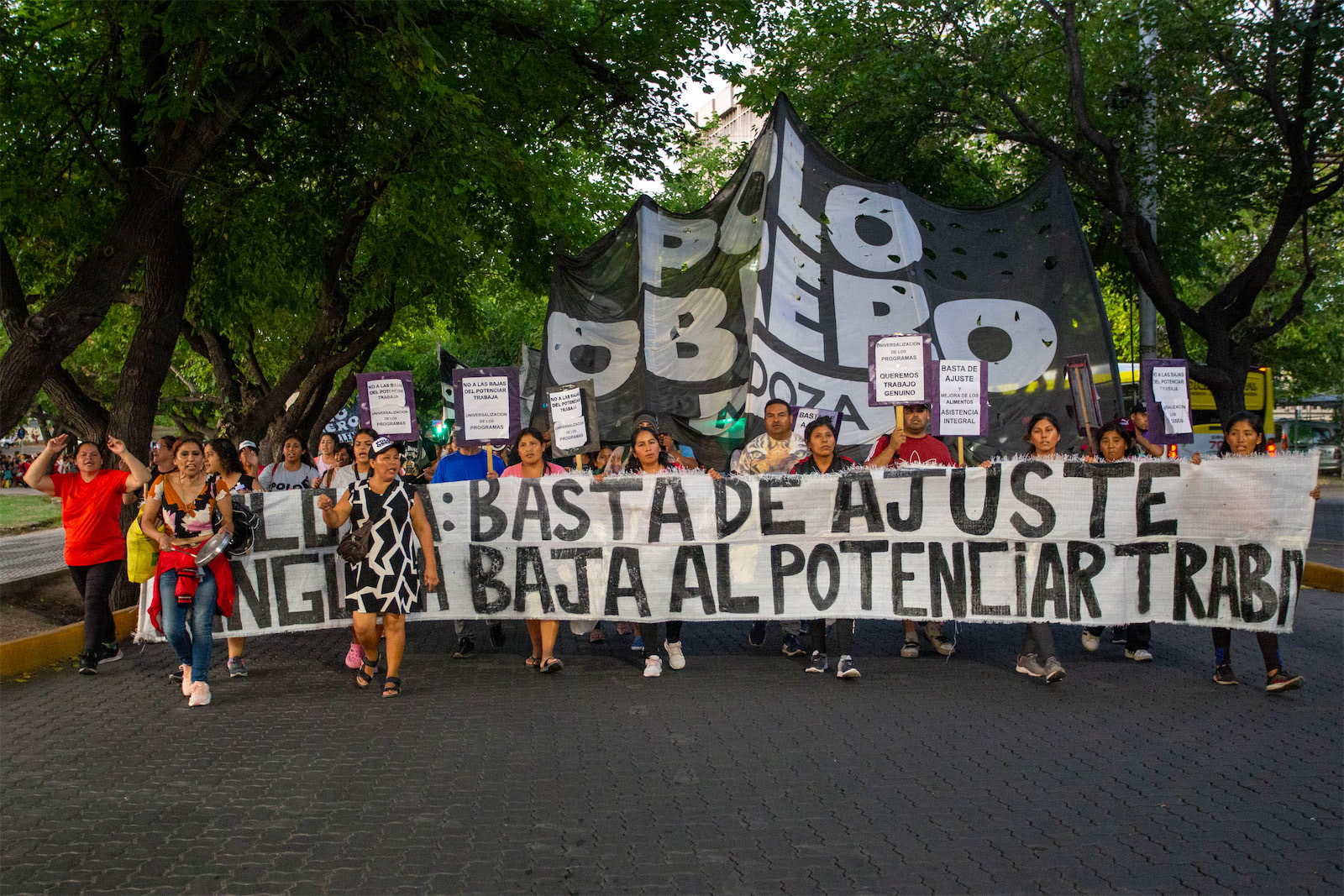 Este miércoles, la organización social Polo Obrero se movilizó junto a las agrupaciones Corriente Clasistay Combativa (CCC), Frente de Izquierda, Partido de los Trabajadores Socialistas (PTS) y Asociación de Trabajadores del Estado (ATE) ocupando toda la calzada por calle San Martín hasta Colón, luego giró por Patricias Mendocinas para marchar hasta la Casa de Gobierno.