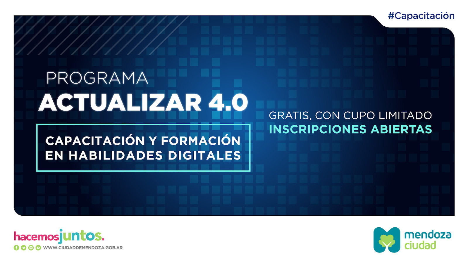 La Municipalidad de la Ciudad de Mendoza junto a la Subsecretaría de Desarrollo del Conocimiento, perteneciente al Ministerio de Desarrollo Productivo de la Nación, llevarán adelante una nueva edición del Actualizar 4.0. Este programa tiene como finalidad capacitar en habilidades digitales para mejorar la empleabilidad y está destinado al público en general, aunque tendrán prioridad personas en vulnerabilidad social y mayores de 40 años desempleadas.