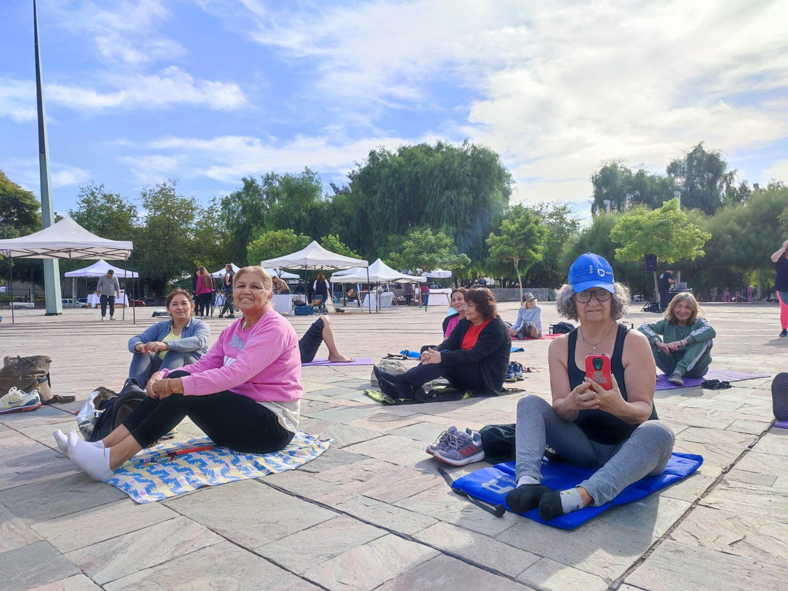 Cerca de 40 adultas mayores disfrutaron del taller de cuidados posturales, yoga y mindfulness de la Ciudad. El encuentro fue en el Parque Central y estuvo a cargo de la licenciada en Kinesiología y profesora de Yoga Nadia Aguirre.