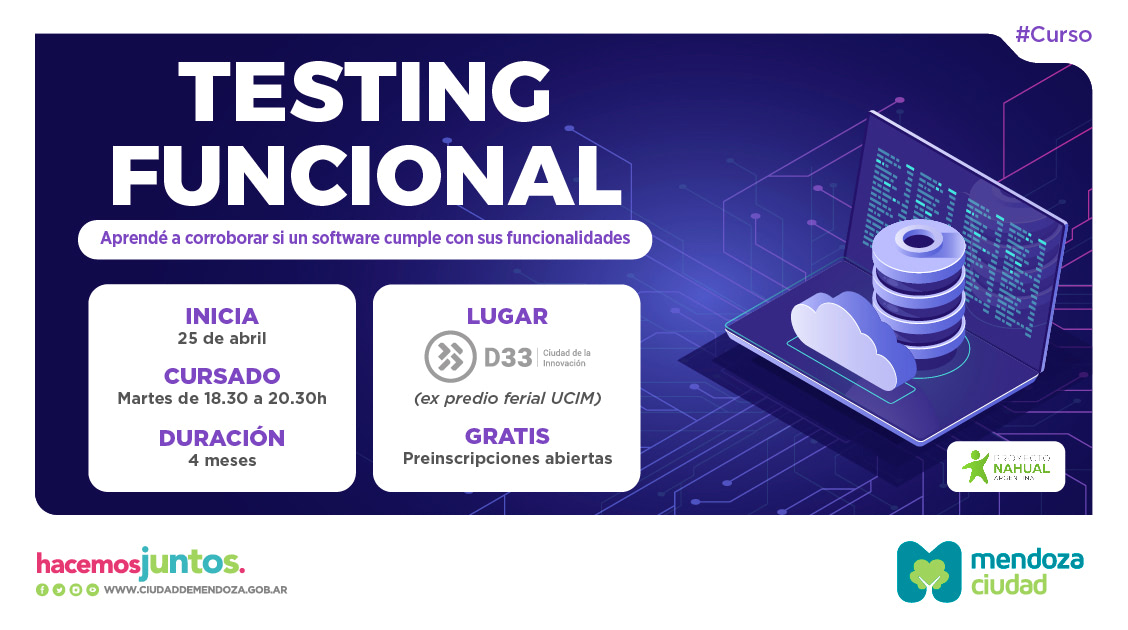 La Ciudad pondrá en marcha el curso de Testing Funcional, una técnica utilizada en el desarrollo de software para evaluar la funcionalidad de una aplicación o sistema. El mismo comenzará el 25 de abril en el Distrito 33, tendrá una duración de cuatro meses y se cursará todos los martes de 18.30 a 20.30.