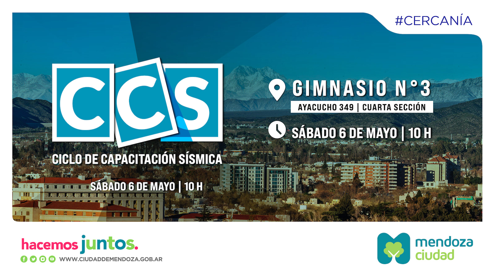 Llega un nuevo encuentro de prevención sísmica en la Ciudad de Mendoza. En esta oportunidad será el sábado 6 de mayo a las 10, en el espacio deportivo ubicado en calle Ayacucho 349 de la 4ta. Sección.