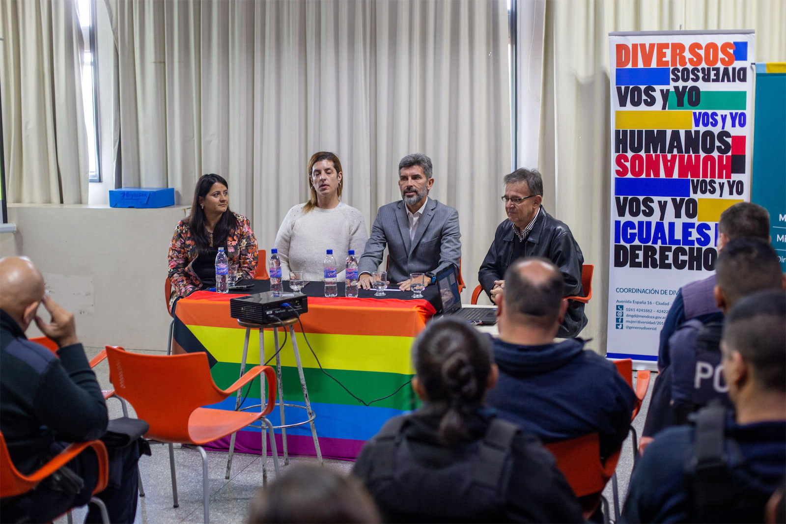 El Ministerio de Seguridad de la provincia, en conjunto con el Ministerio de Salud, Desarrollo Social y Deportes continúa realizando capacitaciones para el personal policial en materia de respeto, inclusión y diversidad sexual. En la jornada de hoy se realizó el sexto encuentro del año, en el SUM del séptimo piso del edificio municipal de la Ciudad de Mendoza, con la presencia de autoridades de la Dirección de Capital Humano y Capacitación del ministerio de seguridad y del intendente Ulpiano Suarez.