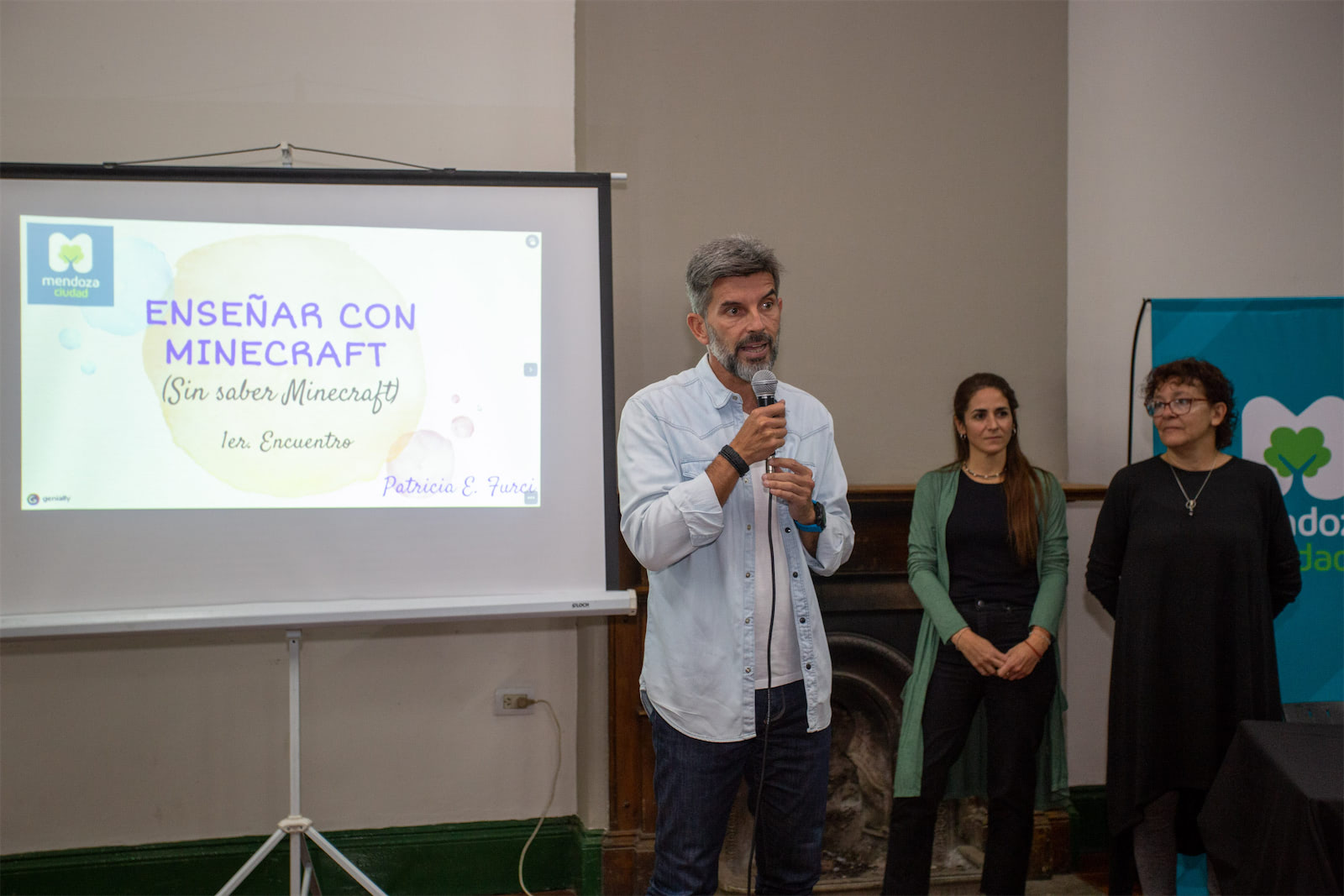 La Ciudad celebró el primer encuentro del taller Enseñar con Minecraft (sin saber Minecraft). Fue en el Espacio de Convergencia Social (ECoS) con la participación del intendente, Ulpiano Suarez, la directora de Educación, Elvira Stone, la profesora e ingeniera Patricia Furci y 65 personas de la comunidad educativa del Gran Mendoza.