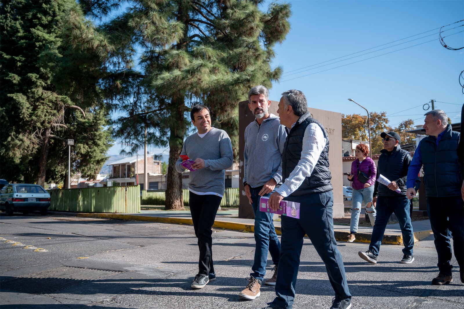 El intendente Ulpiano Suarez y el senador nacional, Alfredo Cornejo, recorrieron el sector y conversaron con comerciantes y vecinos.