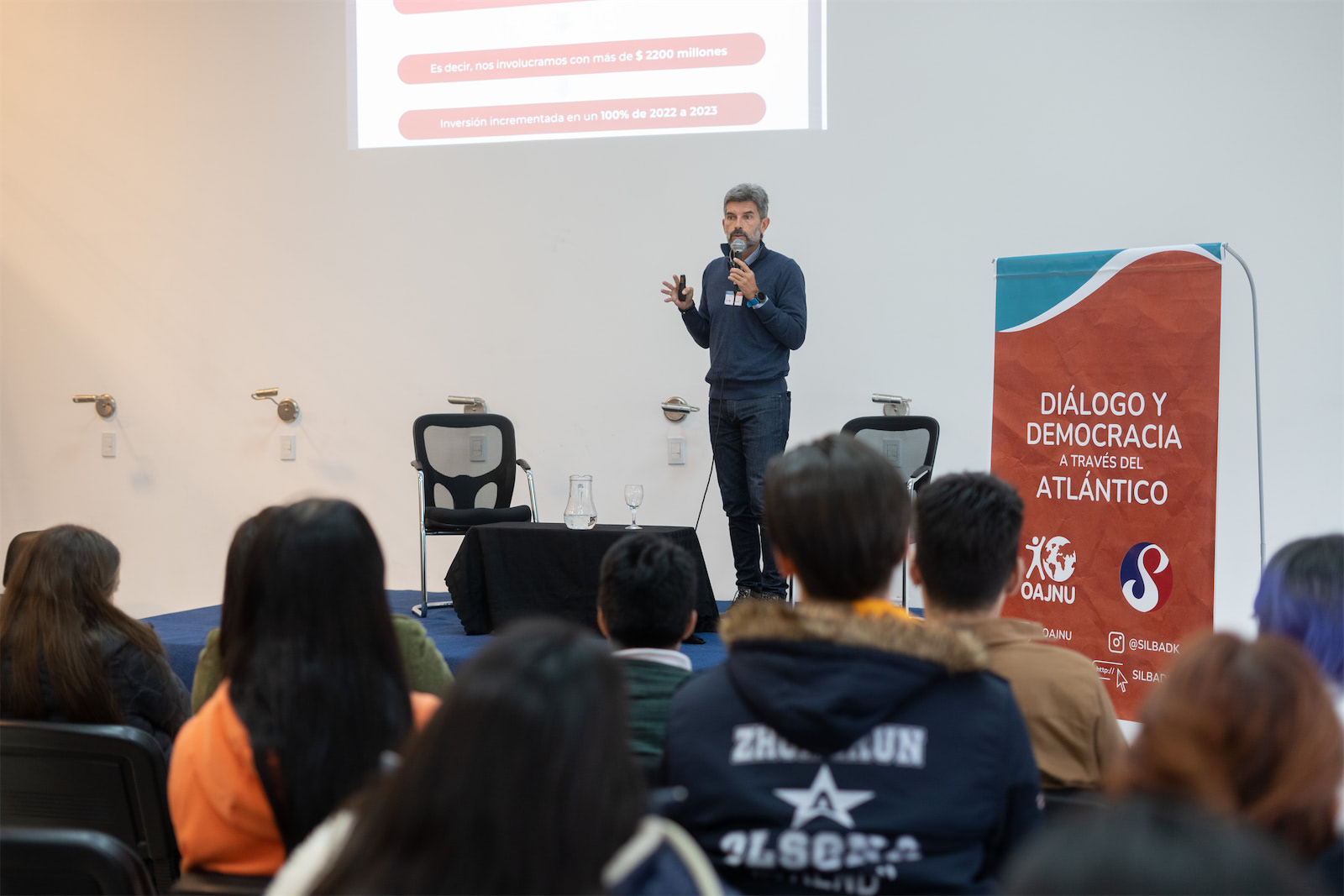 De este modo, en la biblioteca de la universidad, se llevó adelante la segunda etapa con un coloquio donde participaron cuatro oradores dispuestos para los distintos ejes de debate. Los ejes fueron: acceso y permanencia en la educación superior, inseguridad, salud mental y empleo joven.