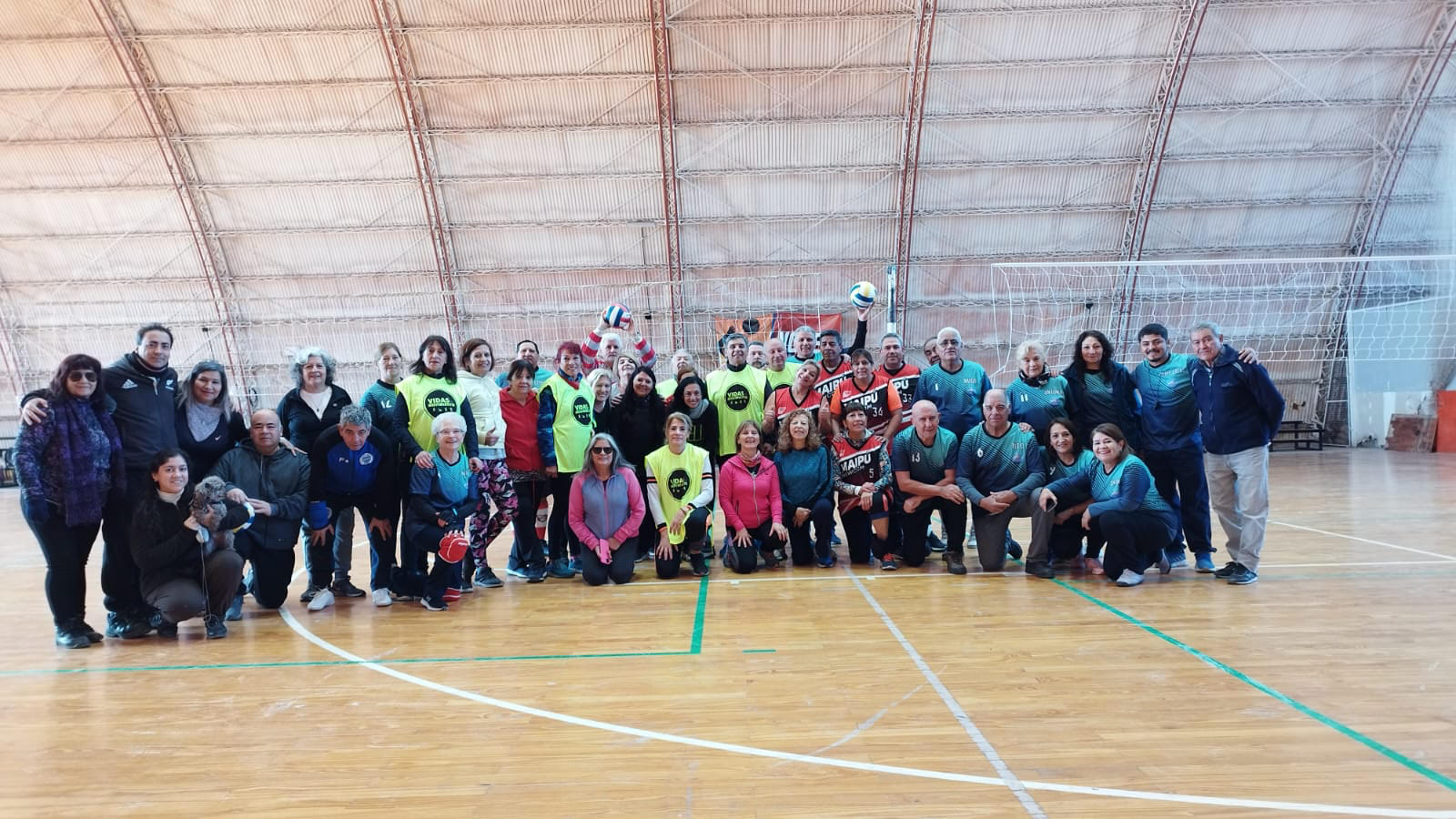 Personas mayores que juegan a Newcom -deporte similar al vóley que está siendo furor en la población adulta mayor- en la Ciudad participaron de un encuentro no competitivo en Santa Rosa. Fue en el polideportivo Juan Francisco Cueto, bajo la invitación del equipo local Arcoíris.