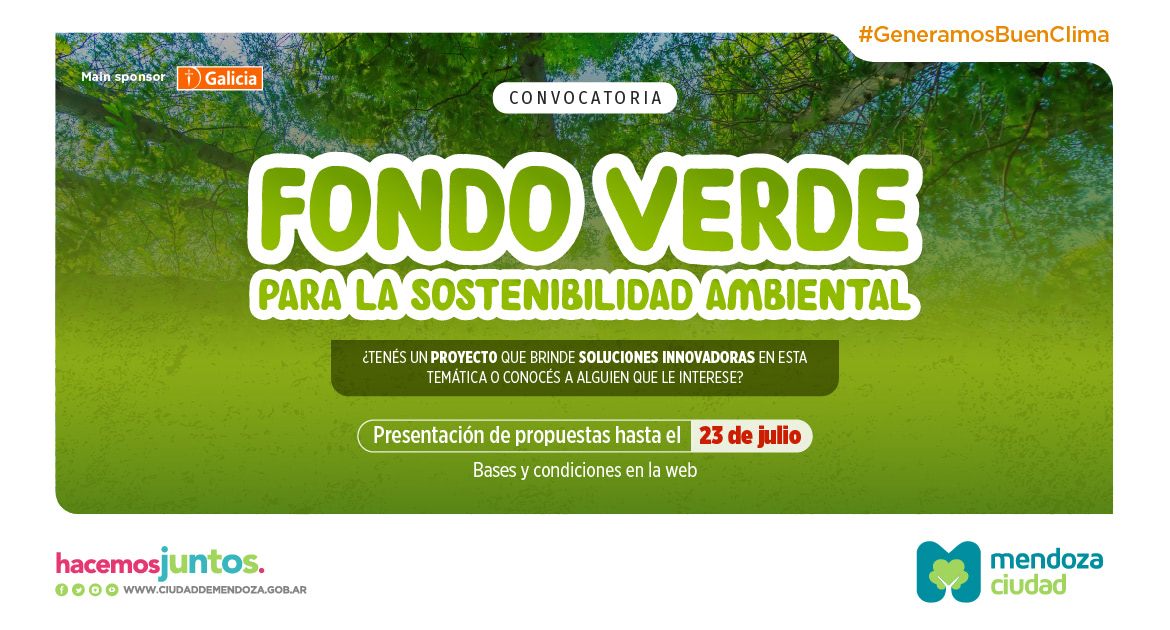 La Municipalidad de la Ciudad de Mendoza junto al Banco Galicia, lanzaron el Fondo Verde para la Sostenibilidad Ambiental, una convocatoria para que entidades presenten proyectos sobre diferentes temáticas ambientales. Pueden postularse y participar universidades e instituciones académicas, ONG, centros de investigación, entre otras entidades.