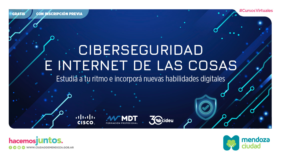 La Ciudad de Mendoza, junto a CIDEU y CISCO Networking Academy, con el apoyo de Merlin DT, ponen en marcha dos capacitaciones a las que se podrán acceder desde la plataforma Skills for All. Las mismas son totalmente gratuitas y en modalidad virtual: Introducción al Internet de las Cosasy Transformación Digital, y Ciberseguridad.