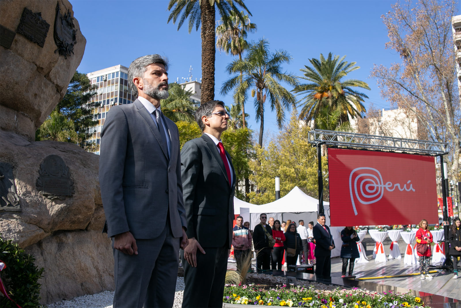 Bajo el monumento del General José de San Martín, la Ciudad celebró el 202º aniversario de la Independencia del Perú, con la presencia del intendente Ulpiano Suarez junto al cónsul general de Perú, Alberto Hart Merino. También estuvo el ministro de Infraestructura de la provincia, Mario Isgró; con autoridades provinciales, municipales, diplomáticas, policiales y militares.