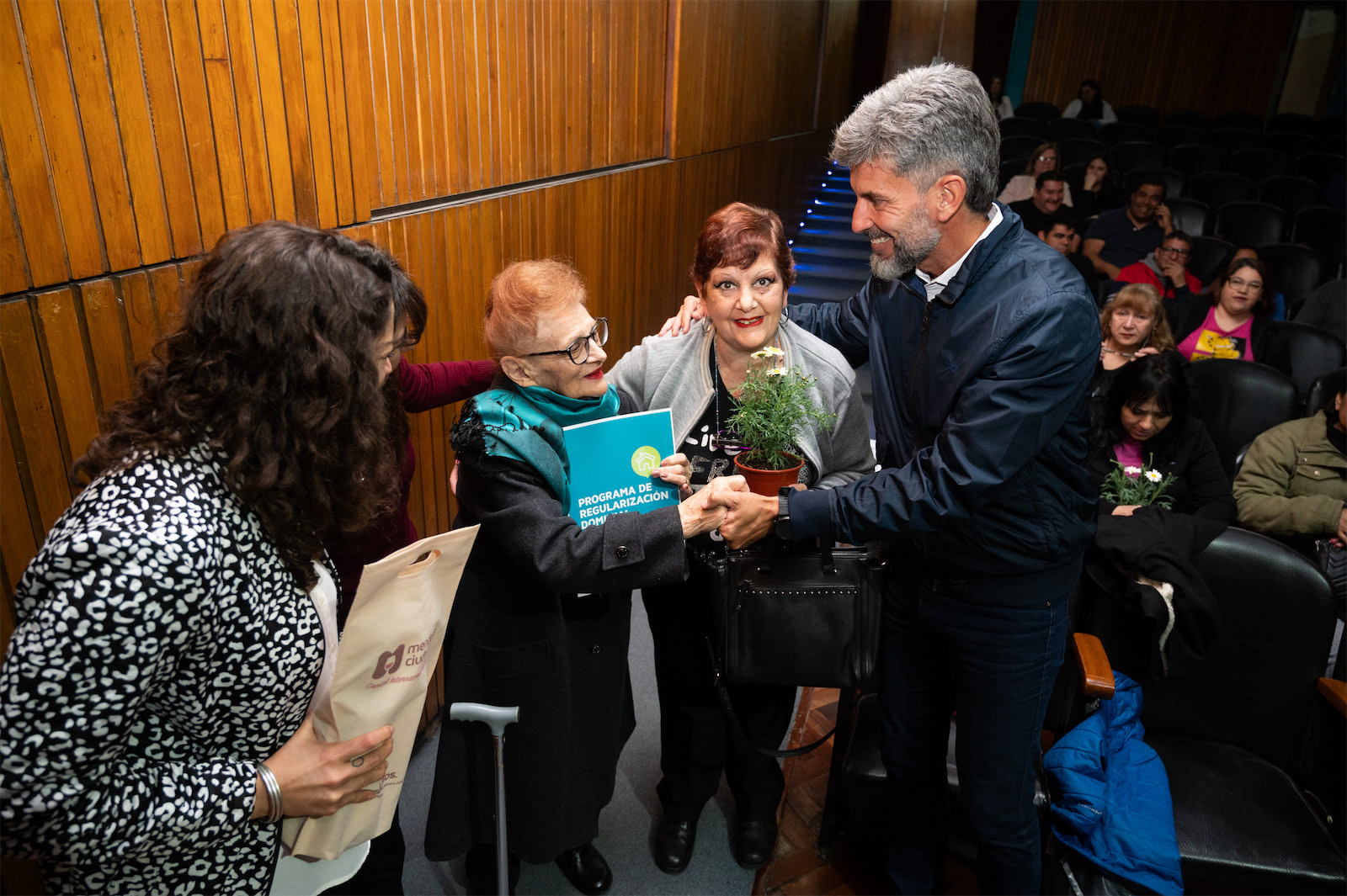 En el Microcine Municipal, vecinos y vecinas recibieron con mucha emoción la documentación de sus viviendas. Participó del acto el intendente Ulpiano Suarez.