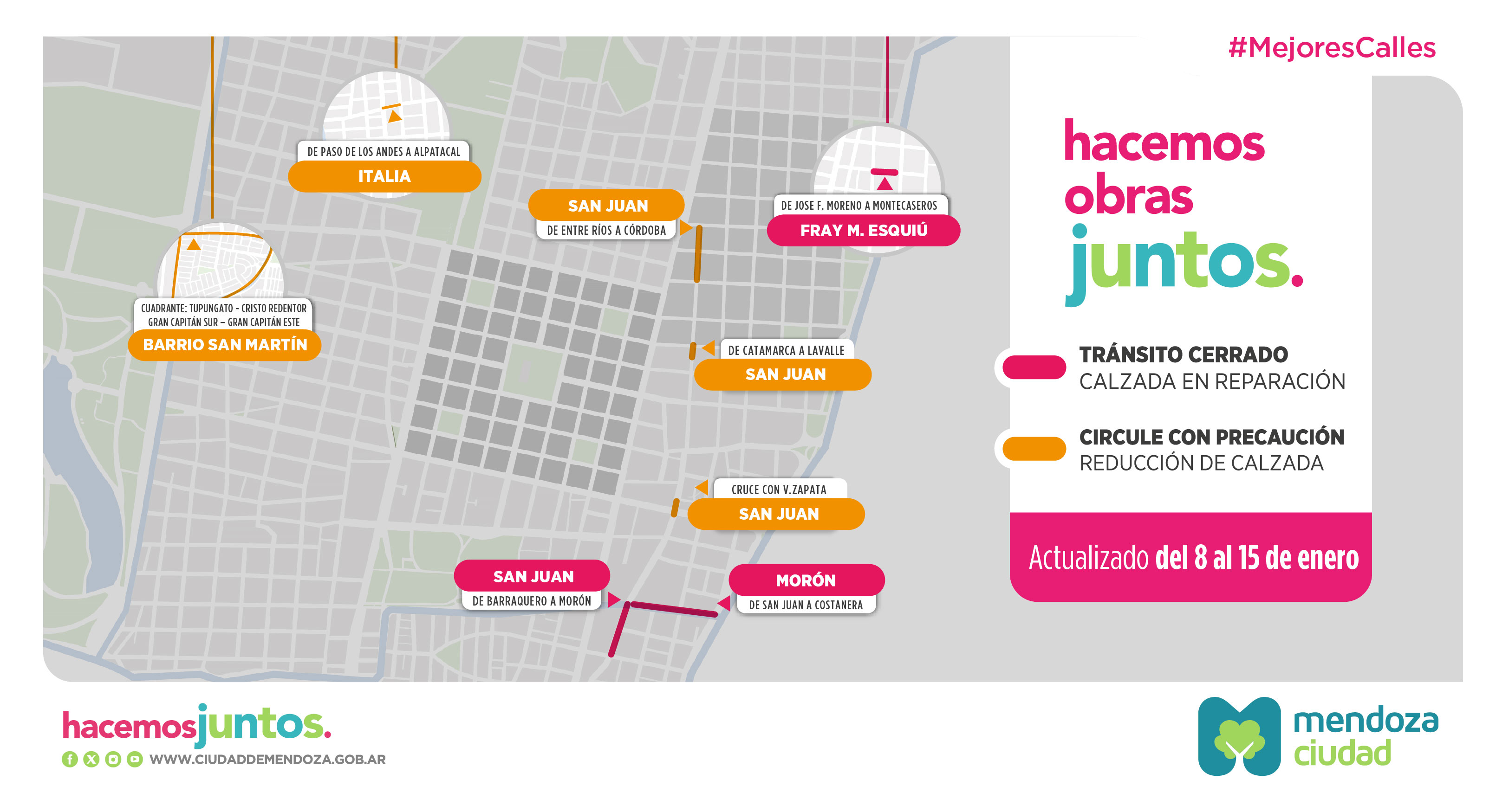 Informamos en esta nota, el detalle actualizado de obras comprendidas entre el 8 de enero y el 15 de enero de 2024. El municipio aconseja, en la medida de lo posible, utilizar vías alternativas de circulación a aquellas arterias donde se están produciendo mejoras viales.
