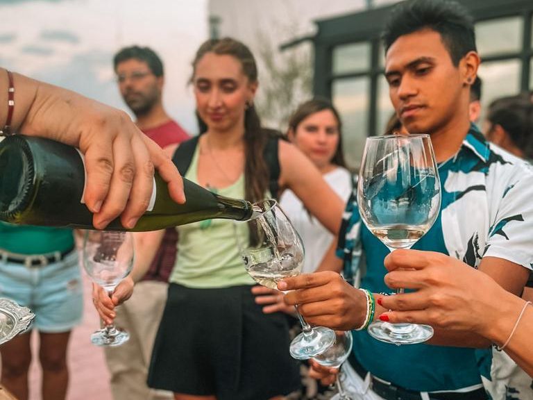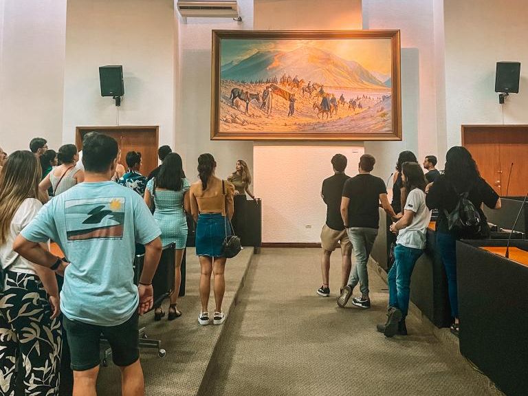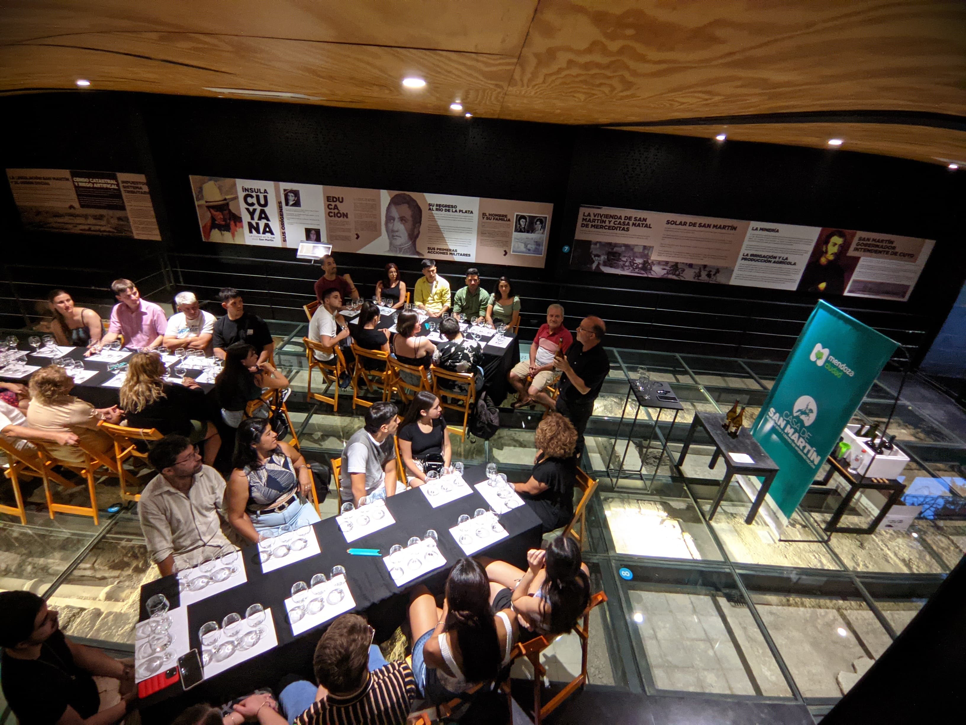 El circuito guiado visitó en primera instancia la Pinacoteca Sanmartiniana y luego la Sala del Vino, en donde se conoció más sobre nuestra bebida nacional y Ciudad del Maridaje. Allí, se disfrutó de una degustación dirigida con exquisitos vinos de “Finca Flia. Robles”, a cargo de Bartolomé Robles. Los presentes pudieron deleitarse con “Nativus”, un increíble vino rosado de uva criolla 100% Canela 2022 (vino de tonos rojizos, expresivo en nariz y boca, con notas florales, frescas y cítricas), acompañado de un maridaje de quesos, frutos secos y salazones.