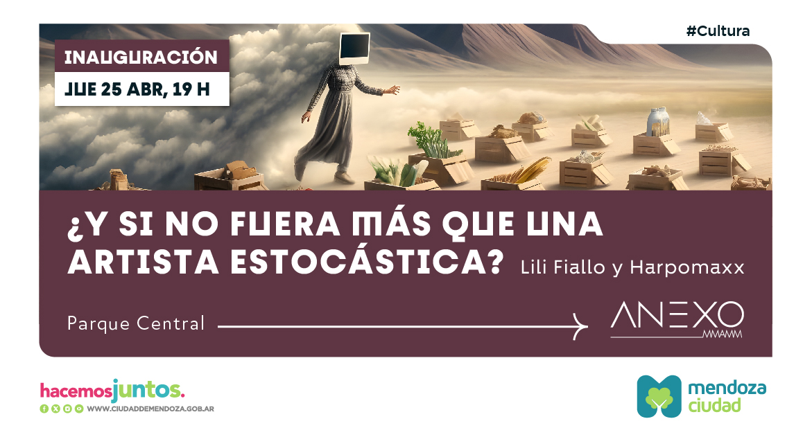 La Ciudad invita a la inauguración de la exposición“¿Y si no fuera más que una artista estocástica?”, de Lili Fiallo y Harpomaxx, que se realizará el próximo 25 de abril a partir de las 19h, en la Sala Anexo MMAMM, del Parque Central. La muestra podrá visitarse hasta el7 de julio, de miércoles a domingos de 16 a 20 h, con entrada libre y gratuita.