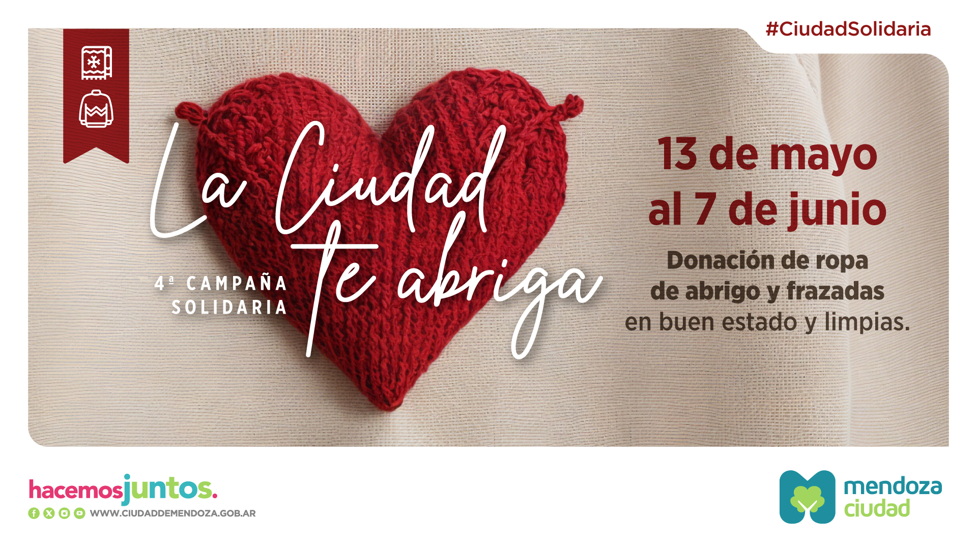 La 4ta. edición de la Ciudad te abriga ya comenzó. Esta iniciativa busca acompañar a las personas que se encuentran en situación de vulnerabilidad social con la donación de ropa de abrigo limpia y en buen estado.