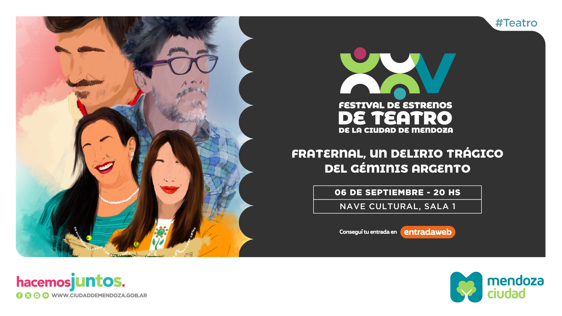 Sala 1 de la Nave Cultural, 20 h. Obra: “Fraternal, un delirio trágico del géminis argento”. Eleonora y Abel organizaron esta cena con muchas expectativas, pero Tania y Cani, los invitados, tienen sus propias intenciones. El reencuentro no será fácil luego de tantos años, los hermanos fueron separados y criados en entornos muy diferentes. Susana, la madre, ha estado al cuidado de Abel, pero afrontar los gastos que genera es difícil y la posición de Cani les augura una salida, sin embargo él tiene otros planes con Tania, y algunos secretos por develar. Todo cambia cuando Abel revela un gran descubrimiento. Apta para mayores de 14 años.
