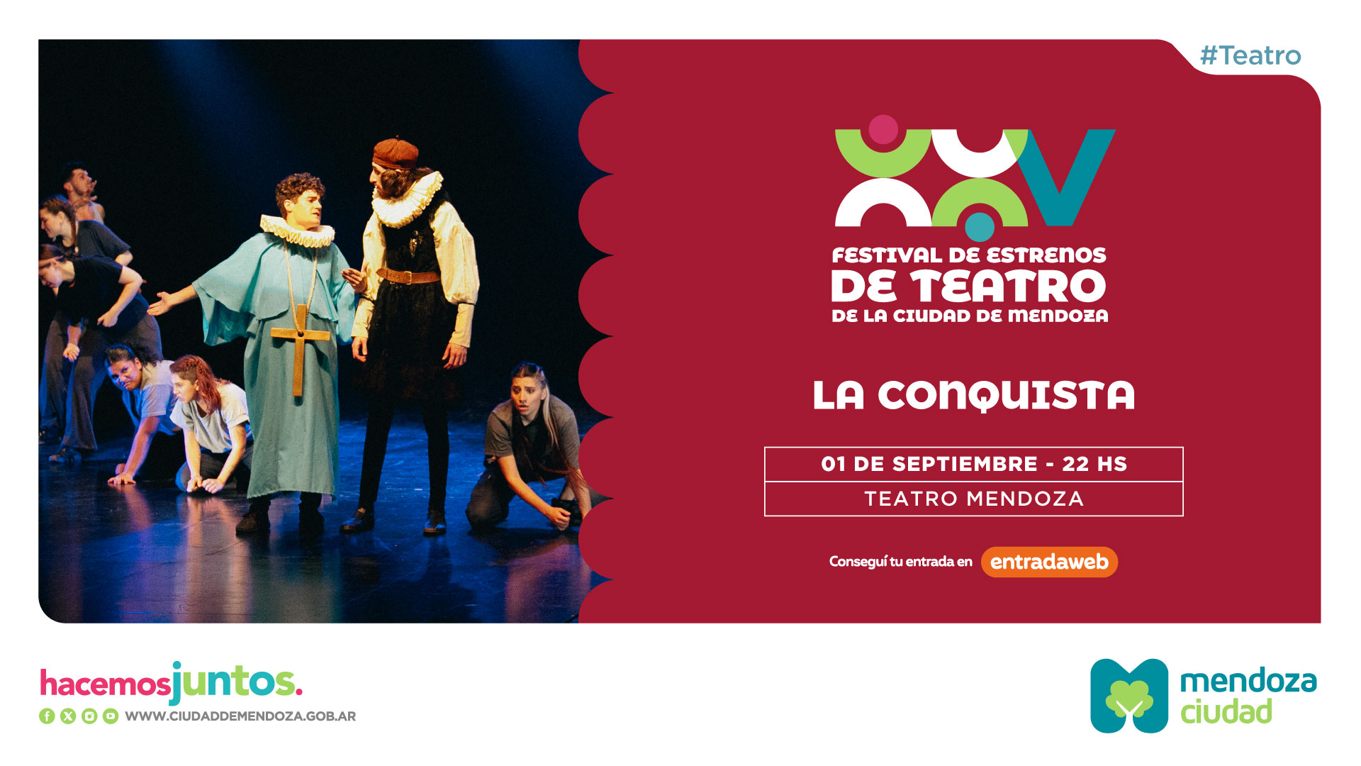 Teatro Mendoza, 22 h. Obra: “La Conquista evolucionada”. Esta obra explora, a través del lenguaje popular y el humor, el descubrimiento de América, con más de veinte artistas en escena y música en vivo. ¿Qué tanto hay de verdad en la historia que nos cuentan? ¿Qué máscaras adopta la conquista con el paso de los años? ¿Cuáles son las formas de aniquilar una cultura? Nos preguntamos: ¿la conquista terminó? Apta para mayores de 13 años.
