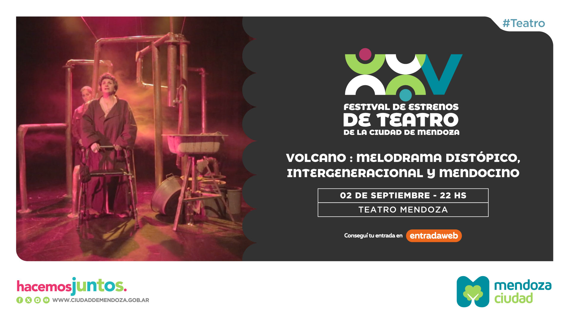 Teatro Mendoza, 22 h. Obra: “VOLCANO/ Melodrama distópico, intergeneracional y mendocino”. Sin saber cómo, Begoña llega sorpresivamente a la ruinosa casa de su abuela y su madre. En lugar de agua, una especie de lava circula por las cañerías. ¿Qué circulará entre ellas? Algo guardado desde hace un tiempo promete detonar en el encuentro de Begoña, Ida y Lelé. Apta para público mayor de 16 años.