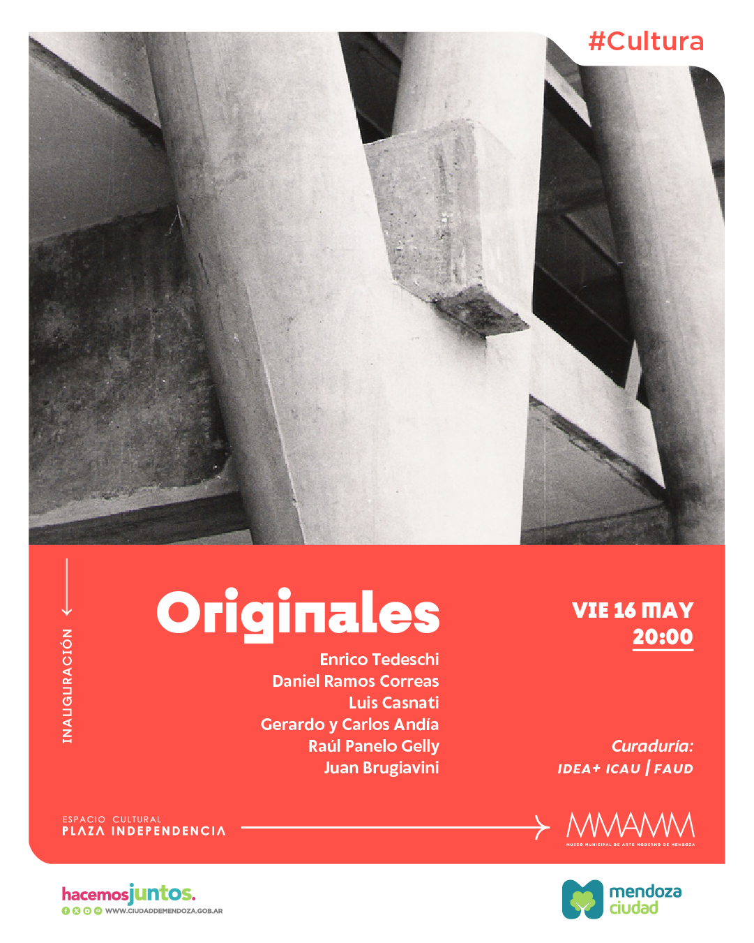 Con entrada libre y gratuita, mendocinos y turistas podrán asistir a la inauguración de las muestras, este viernes 16 de mayo, a las 20 horas, en el museo ubicado en el Espacio Cultural Plaza Independencia (ECPI). En la sala oeste del MMAMM podrá verse “Originales”, una exposición curada por profesores de la Facultad de Arquitectura, Urbanismo y Diseño de la Universidad de Mendoza, que invita a introducirse en el universo de los maestros pioneros que conformaron el grupo inicial de la facultad creada en 1961.