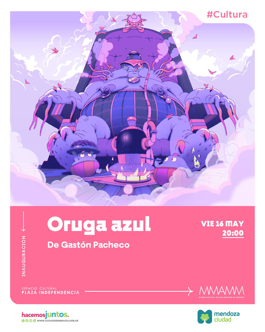Por otra parte, en la sala norte del teatro Quintanilla quedará abierta al público la muestra “Oruga azul”, del reconocido director de arte, diseñador de personajes e ilustrador, Gastón Pacheco, quien obtuvo grandes premios y reconocimientos como Customización de vinyl toys (Deego Toys), Cuadernos de autor “Premio Destapa” (Monoblock), entre otros.