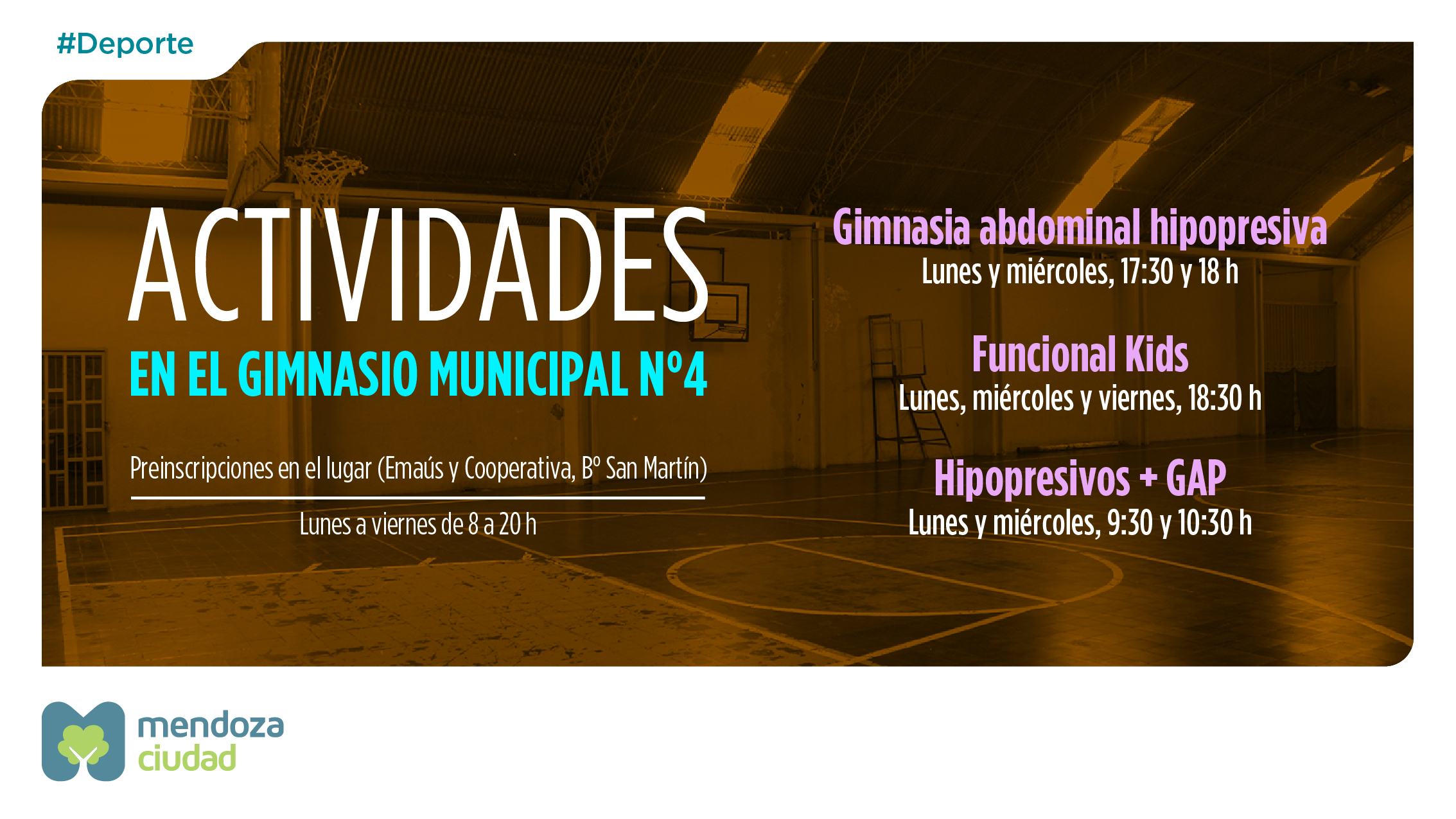 Así es que aquellas personas que estén interesadas en sumarse a alguna de las actividades (ver detalle de contenido y horario abajo), deben hacer la pre inscripción de lunes a viernes en el Gimnasio Municipal N° 4, ubicado en Emaús y Cooperativa del Barrio San Martín. El horario, de 8 a 20 horas.