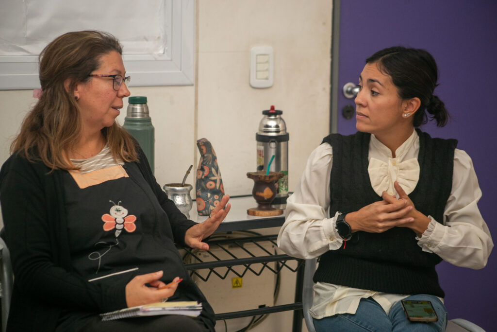 Además de López, estos encuentros se trabajan con un equipo interdisciplinario y, por eso, desde el área de Género, Diversidad y Mujeres de la comuna capitalina también estuvieron Ailen Yarllur (psicóloga), Romina Morcos (abogada) y Mariela Alcanis (técnica comunitaria en familia).