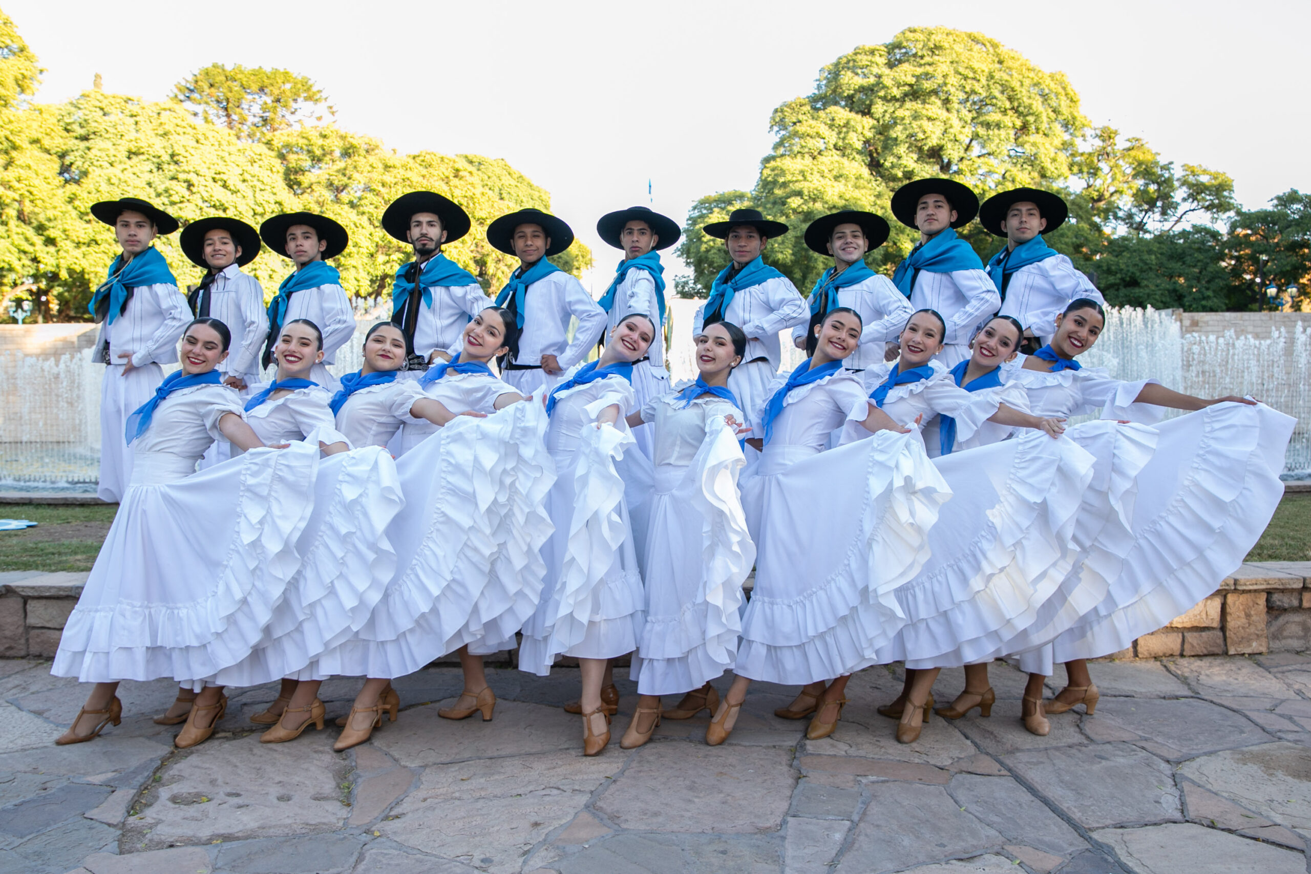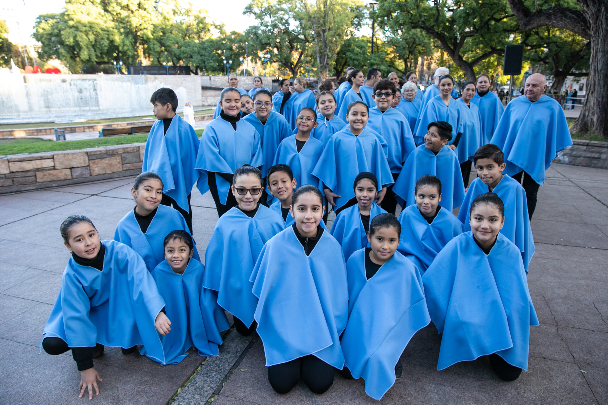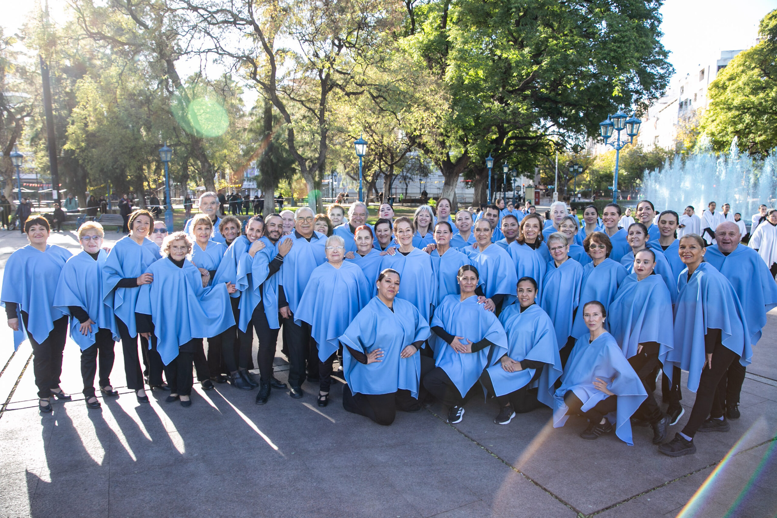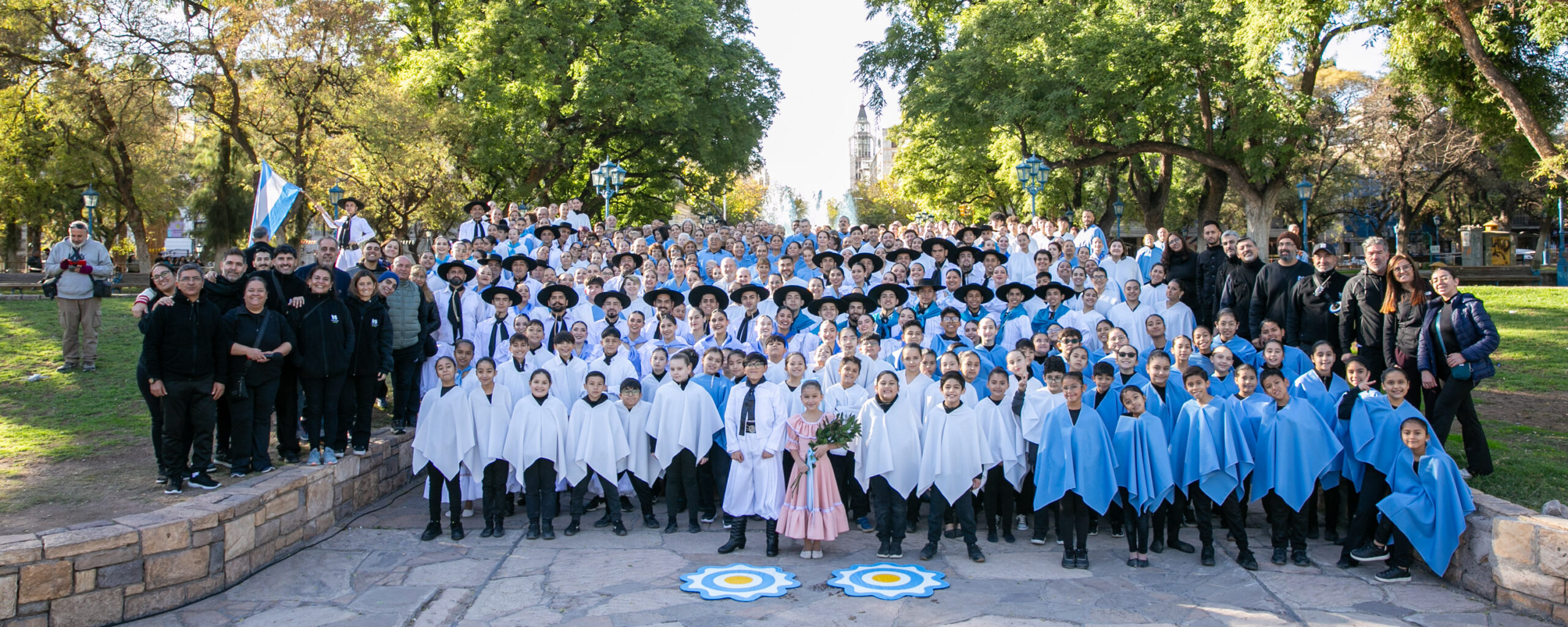 Cuerpos en movimiento, siluetas pequeñas y otras esbeltas, algunas con bastones en mano, todas personas abrazadas por un mismo sentimiento. La convocatoria los unía bajo la bandera de la Patria para enfundarse en vestuarios celestes y blancos que flamearon con orgullo y tradición.