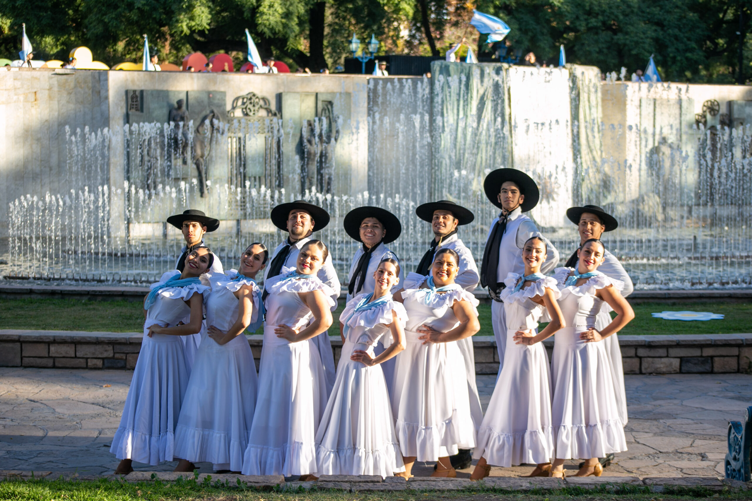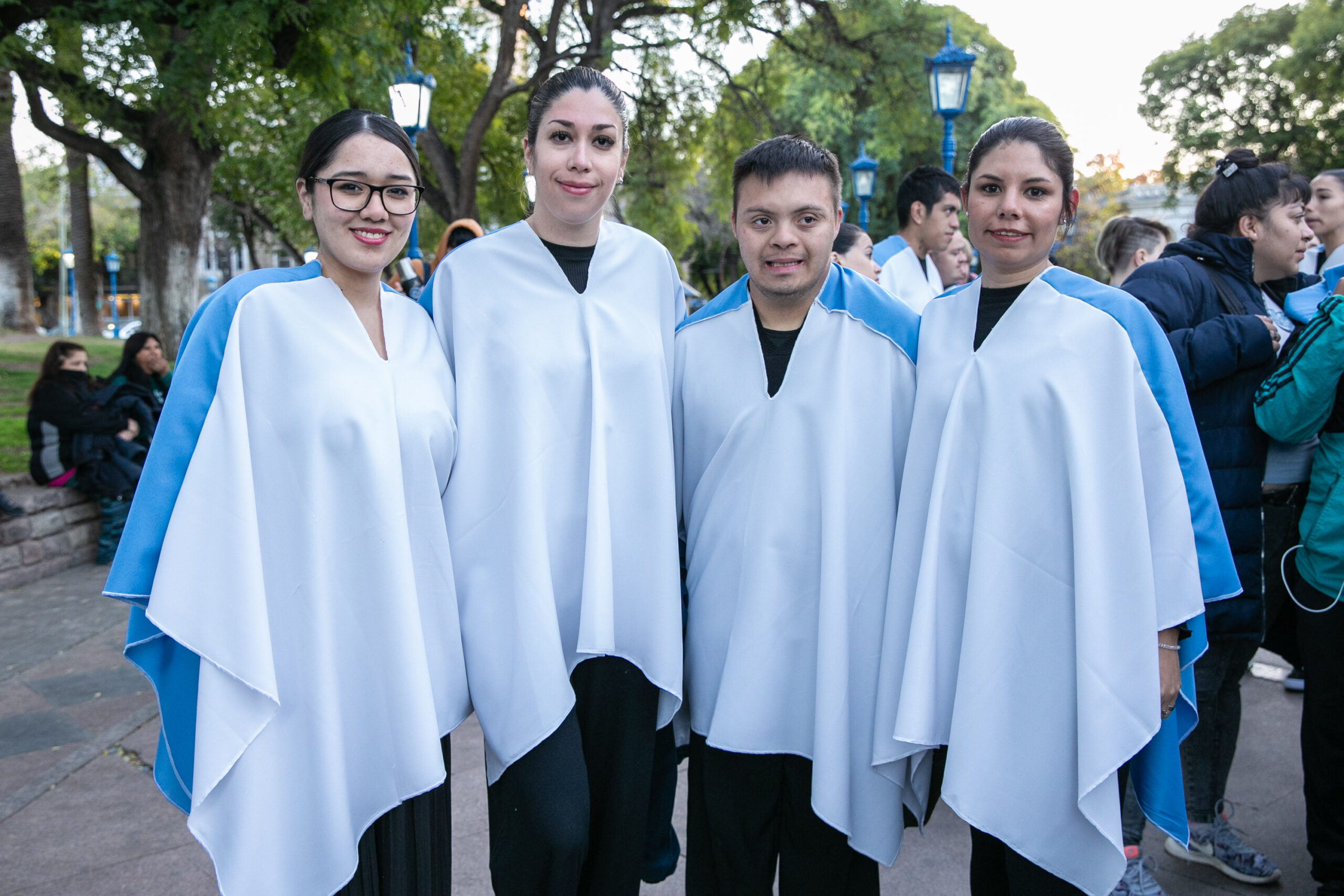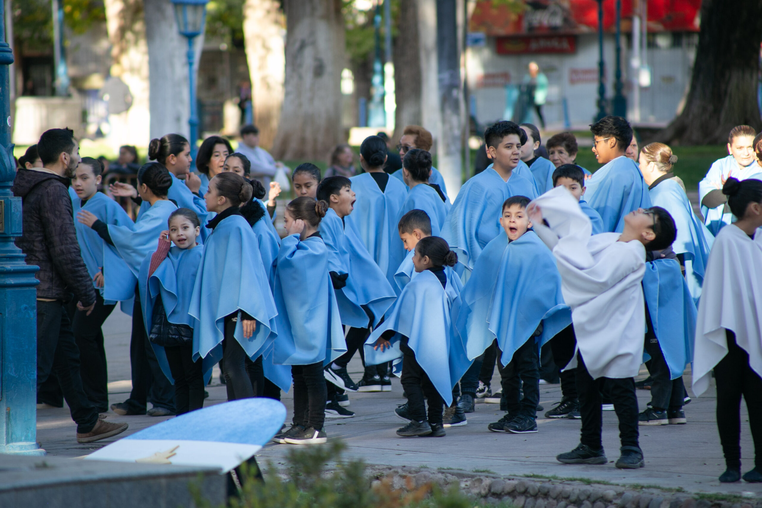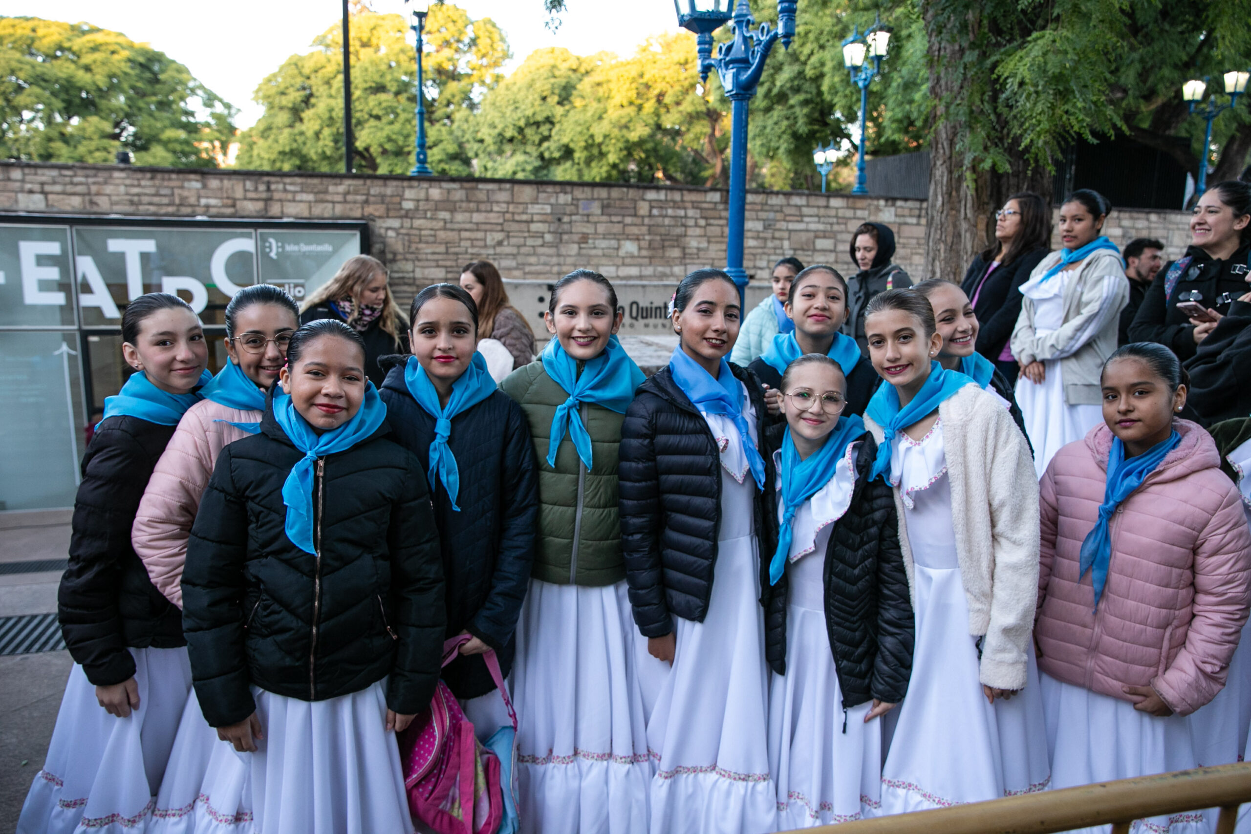 Cuerpos en movimiento, siluetas pequeñas y otras esbeltas, algunas con bastones en mano, todas personas abrazadas por un mismo sentimiento. La convocatoria los unía bajo la bandera de la Patria para enfundarse en vestuarios celestes y blancos que flamearon con orgullo y tradición.