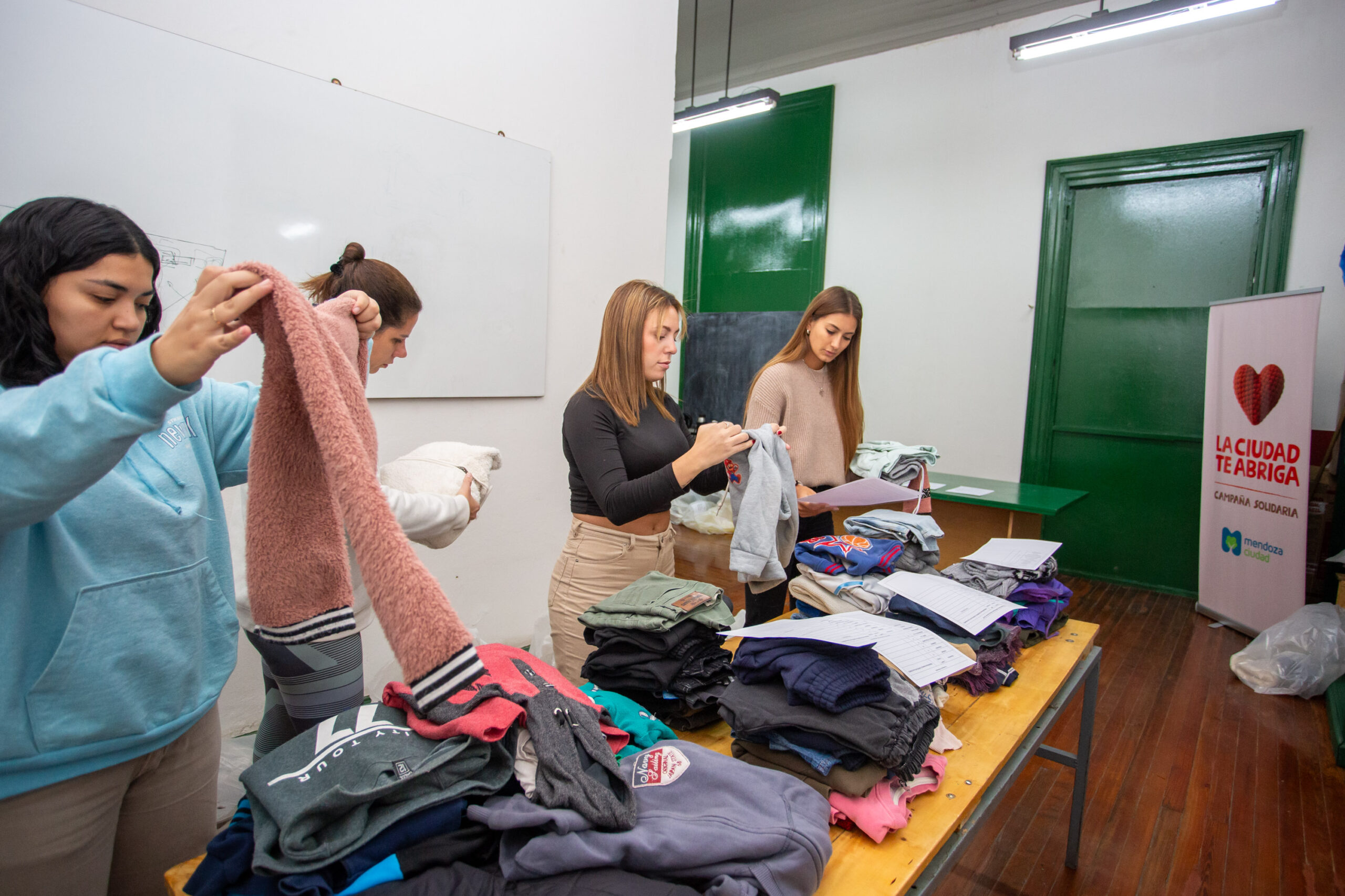 Este martes 27 de mayo, para contar un hecho concreto, el Espacio de Convergencia Social (ECoS) que pertenece al municipio sirvió, una vez más, para que distintos colaboradores se reunieran para seguir clasificando las últimas donaciones recibidas. En esta ocasión participaron voluntarios de Payamédicos, Scout, Club de Ocio, Club de Leones y se sumó también la reina de la Ciudad de Mendoza, Juliana Zalazar.