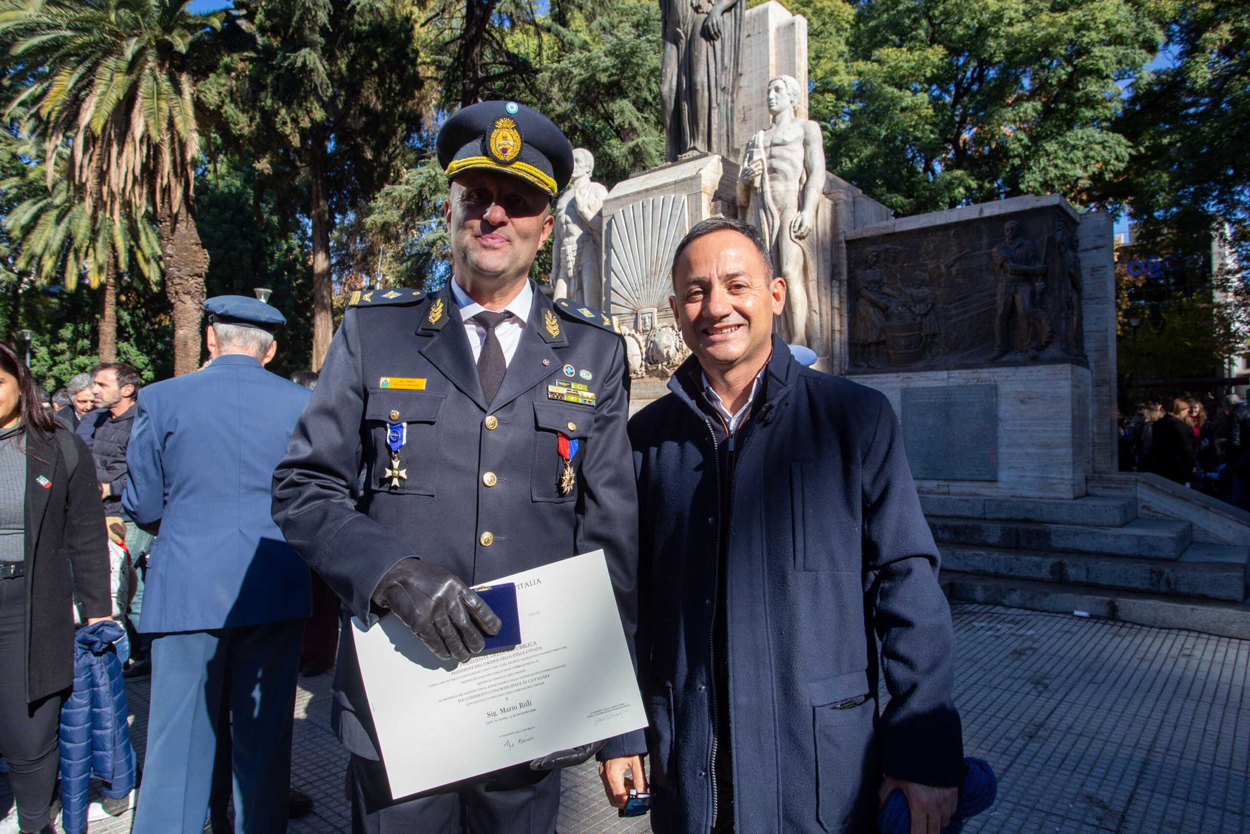 Finalmente, el Cónsul General otorgó condecoraciones a pedido del presidente de la República Italiana con el objetivo de reconocer a algunos representantes de la colectividad. Entre estos, al señor comandante de la policía de Mendoza, licenciado Mario Rihili a quien se hizo entrega de la estrella de Italia que le da el título de Cavaliere.