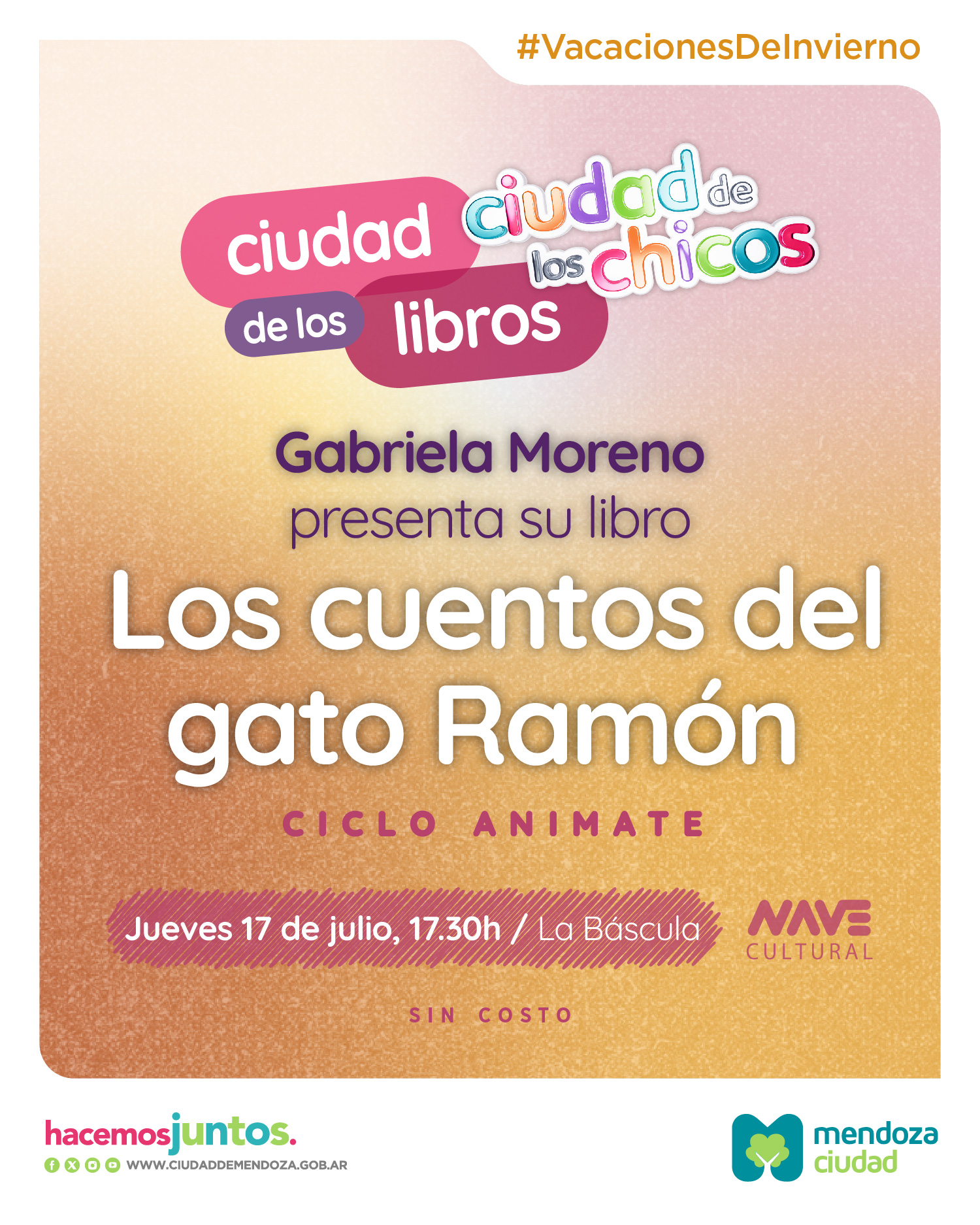 - 17 de julio, 17 h: “Delivery de cuentos” con Nicolás Martínez. A las 17.30, presentación del libro de Gabriela Moreno “Los cuentos del Gato Ramón”. A las 18, “Animate a contar chistes o cuentos graciosos”.