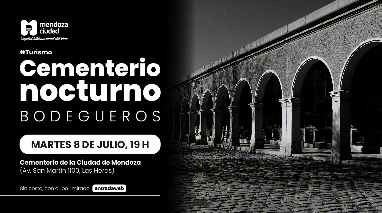 La Ciudad de Mendoza te invita a conocer datos inquietantes de algunas personalidades de la provincia que descansan en el cementerio de la capital. La propuesta es para los días 8 y 22 de julio a las 19 h, en calle San Martín 1100, Las Heras. La entrada es gratuita y debe adquirirse en EntradaWeb.