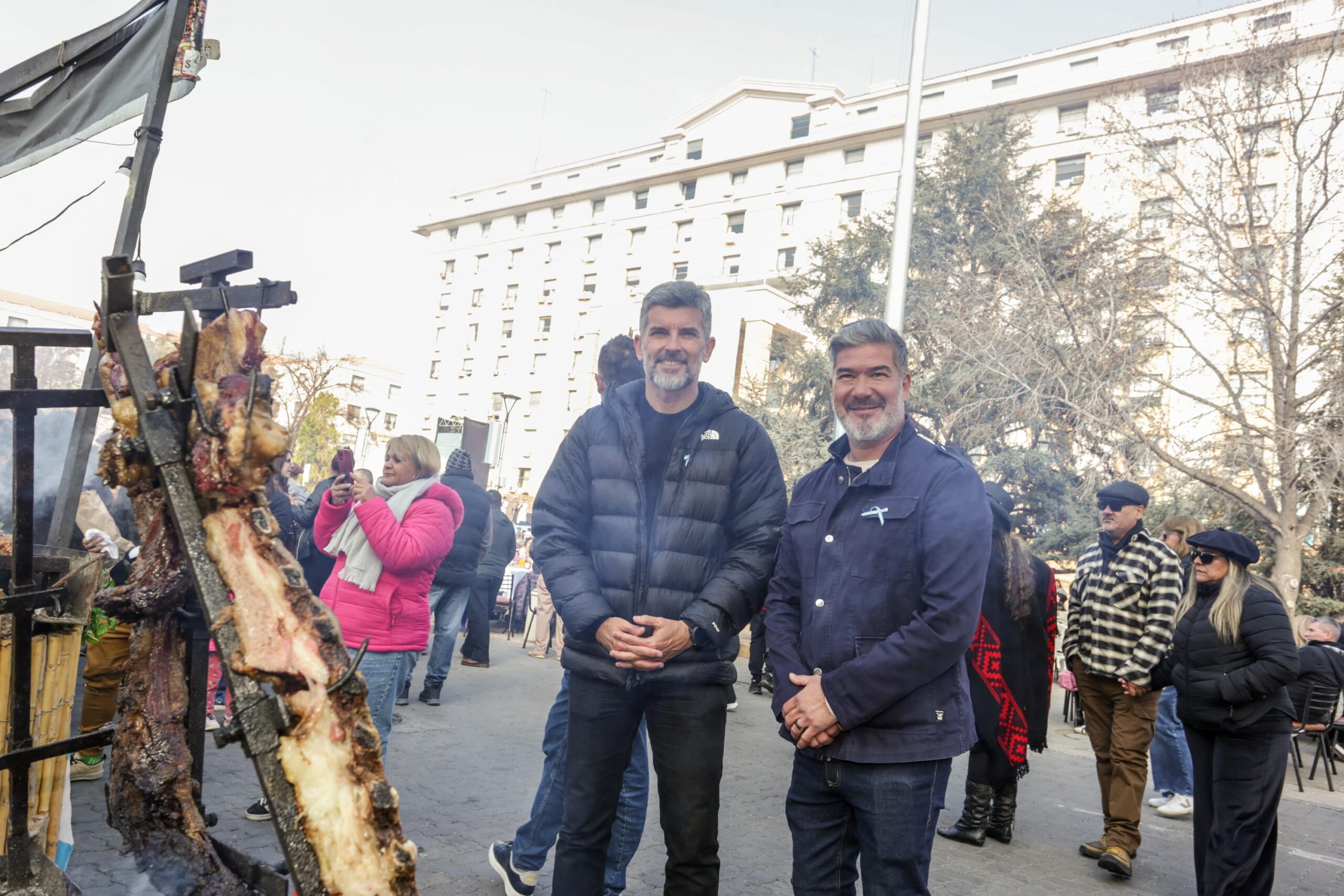 El intendente de la Ciudad de Mendoza, Ulpiano Suarez, aprovechó para recorrer los puestos de artesanos y conversar con los emprendedores que, con su infaltable escarapela, hicieron honor a la patria en sus distintos stands.