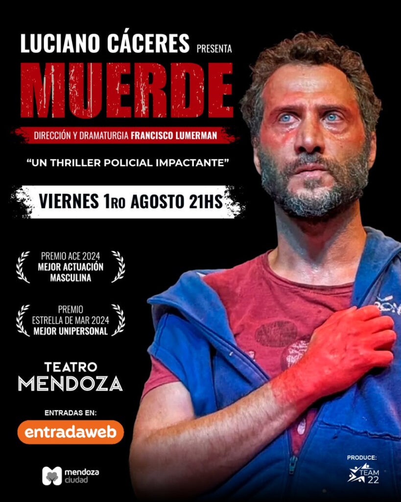 La obra es un thriller inquietante apto para mayores de 16 años que lleva dos temporadas en cartelera con gran éxito. Como parte de su nueva gira, Luciano Cáceres vuelve a la provincia a pedido del público, para presentarse en el Teatro Mendoza, el viernes 1 de agosto a las 21 horas.