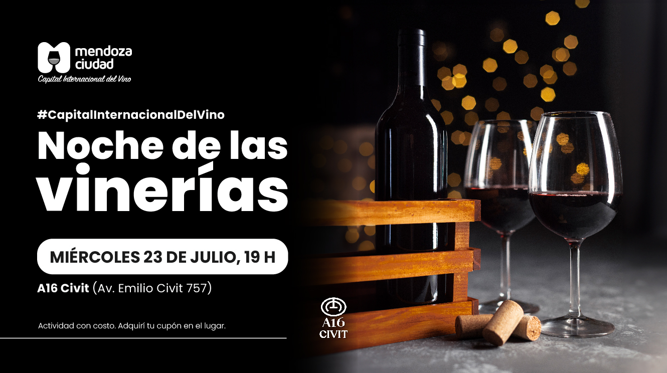 La Capital Internacional del Vino agradece la visita de miles de turistas y mendocinos y los espera el miércoles 23 de julio, a las 19 h, en A16 Civit (Av Emilio Civit 757, Ciudad). Quienes quierar participar deberán adquirir su ticket en la vinería una hora antes del evento. El mismo tiene un valor de $7000.