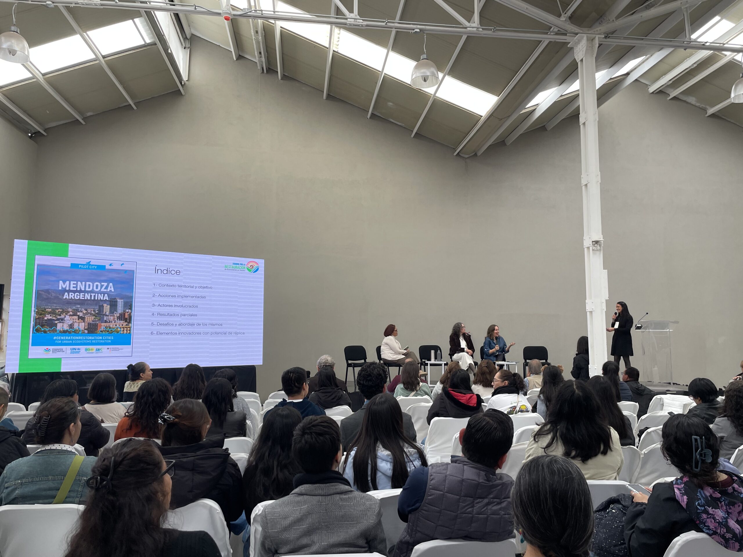 Como representante de la Ciudad de Mendoza asistió Eva González, secretaria de Ambiente y Desarrollo Urbano, quien presentó los proyectos locales en marcha. La capital es una de las 14 ciudades piloto seleccionadas para ejecutar el programa Generación Restauración, iniciativa de la Unidad de Ciudades del Programa de las Naciones Unidas para el Medio Ambiente (PNUMA) en el marco de la Década de la ONU para la Restauración de los Ecosistemas y el Convenio sobre Diversidad Biológica.